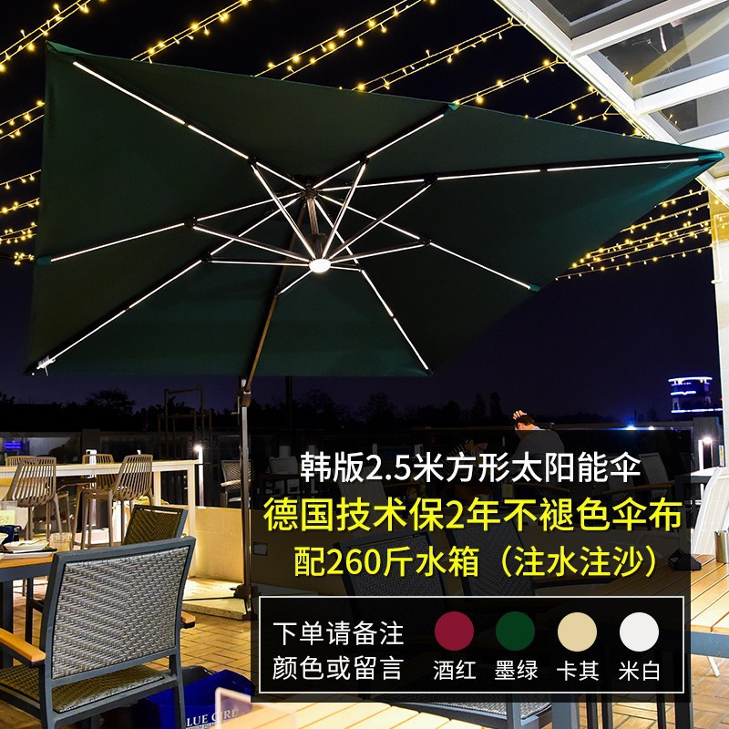 • [유압 우산 개방] 광장 2.5m-램프가있는 터키 유압 우산-150kg 물 탱크 기지