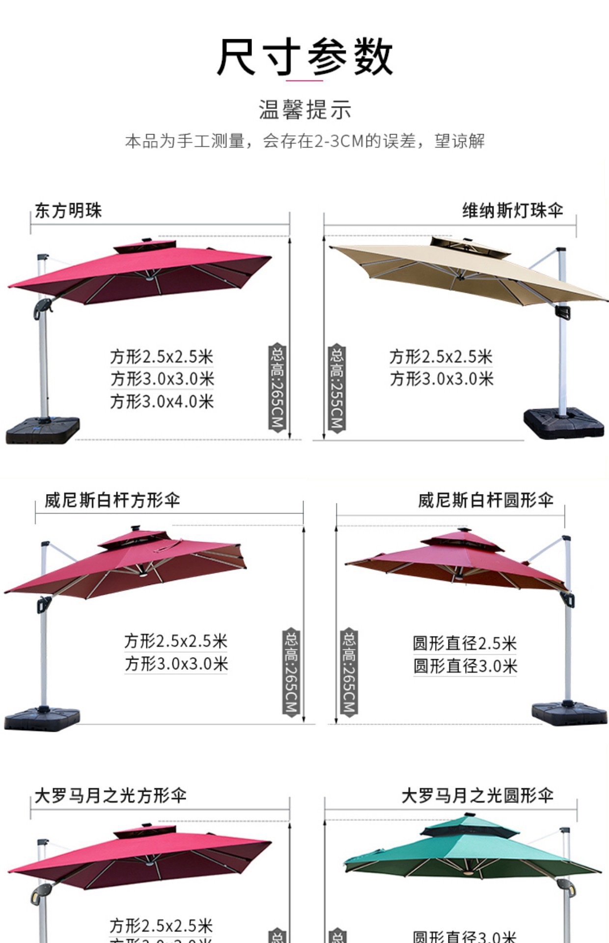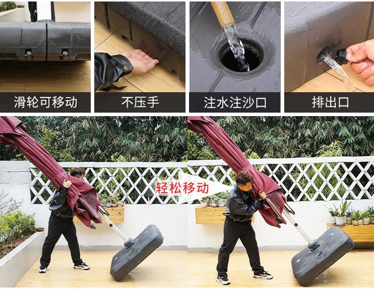 • [유압 우산 개방] 광장 3m-램프가있는 터키 유압 우산-150kg 물 탱크 기지