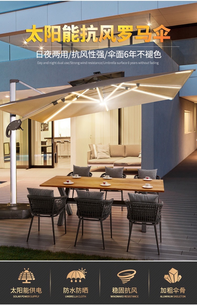 야외 파라솔 빌라 코트야드 우산 빛 태양 LED 빛 야외 우산 정원 야외 테라스 로마 우산스토어 가기