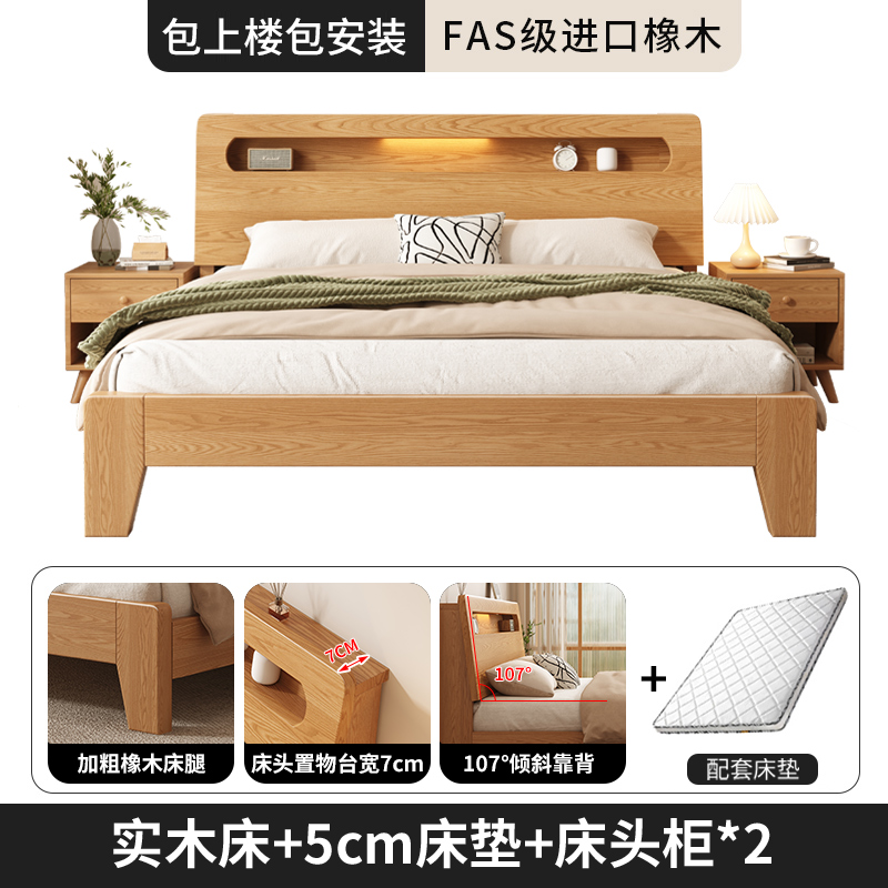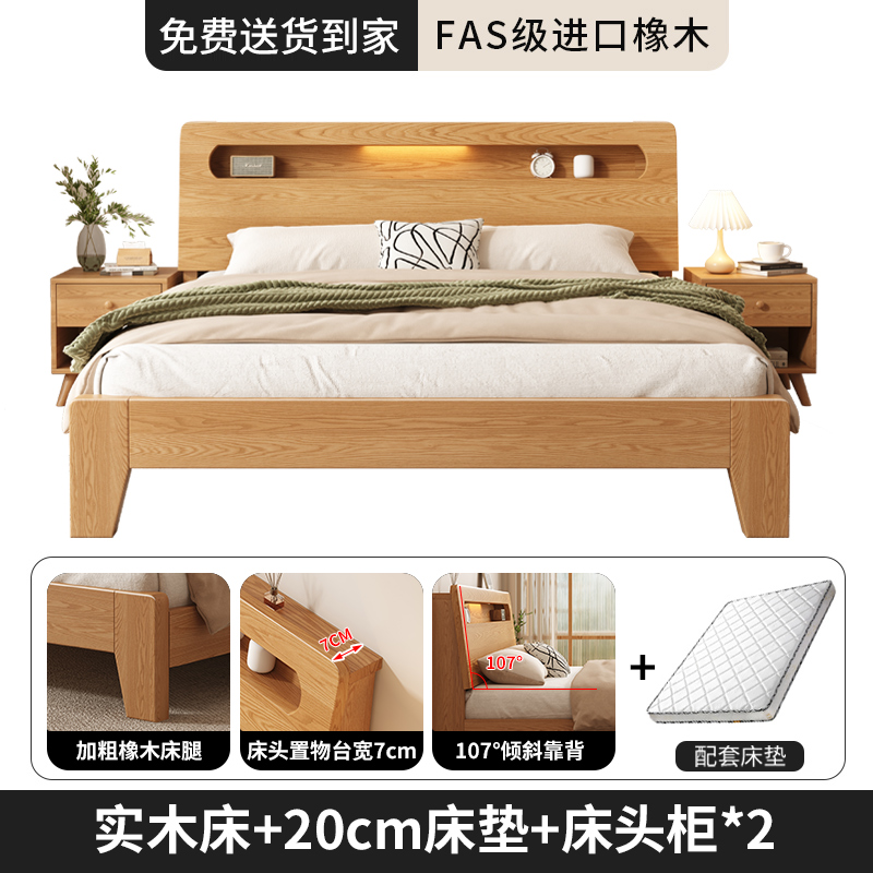 • 오크 침대 20cm 스프링 매트리스 침대 옆 탁자 * 2 [위층 가방]