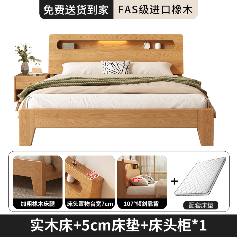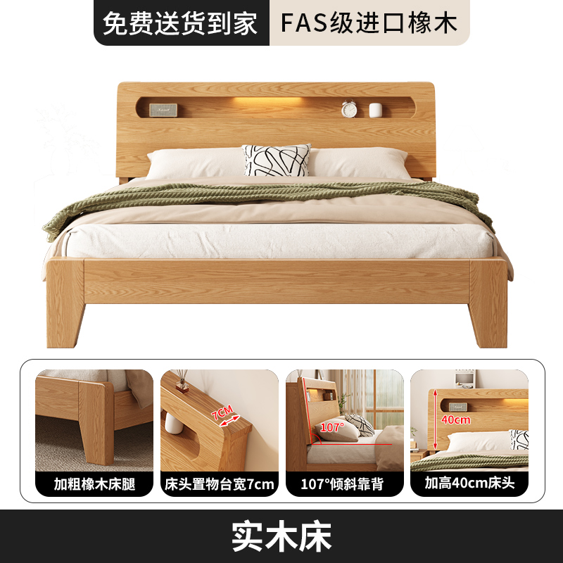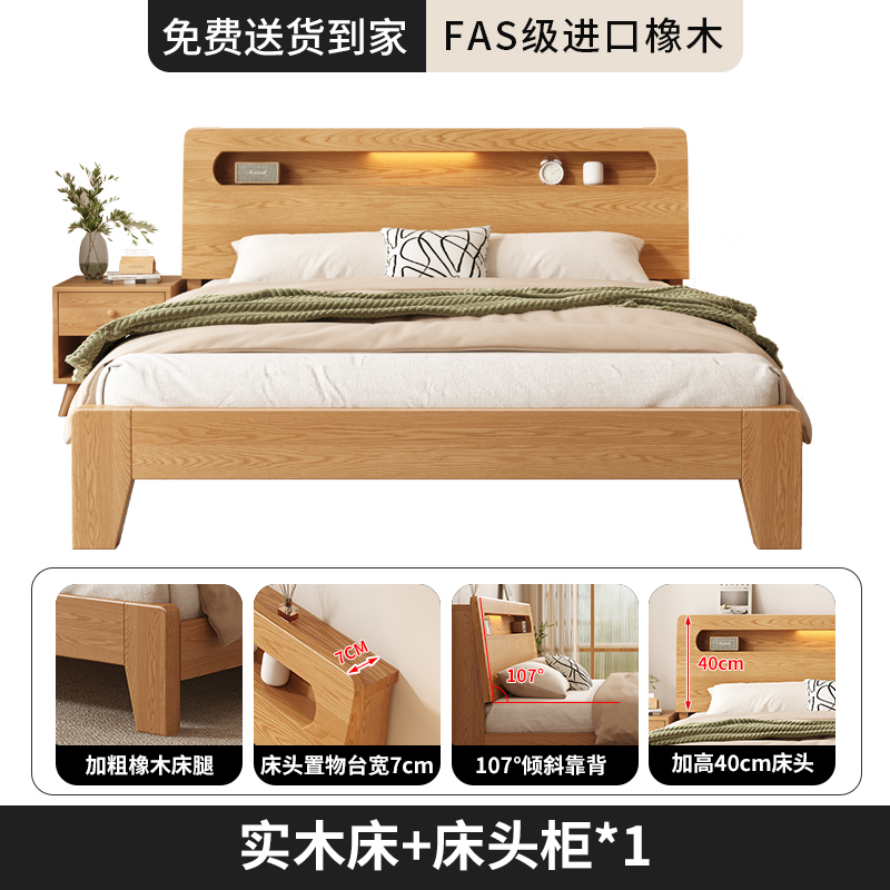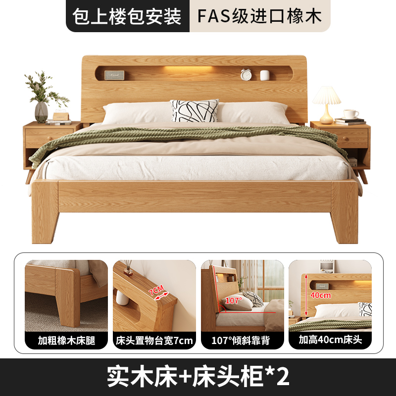 침대 단단한 나무 침대 간단한 현대 1.5 m 더블 침대 홈 침실 북유럽 1.8m 오크 저장 싱글 침대 프레임스토어 가기