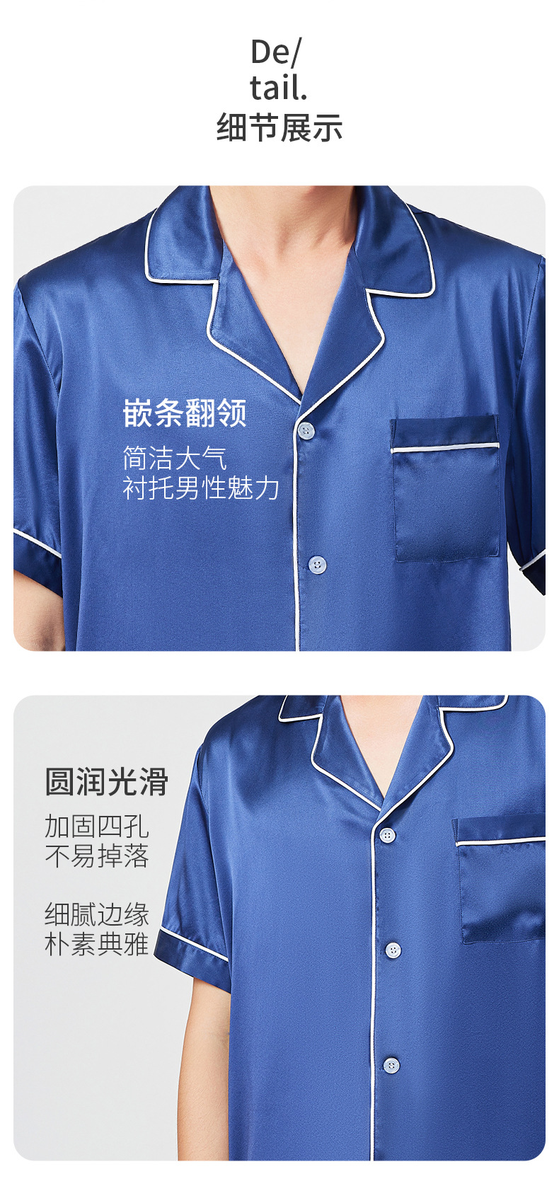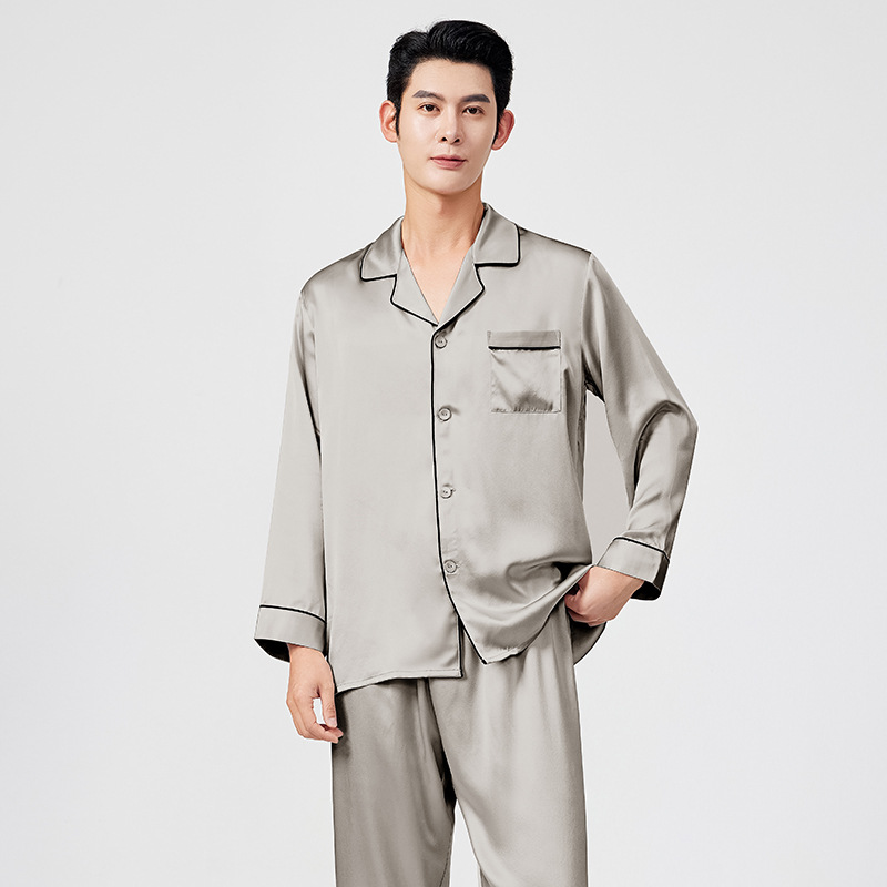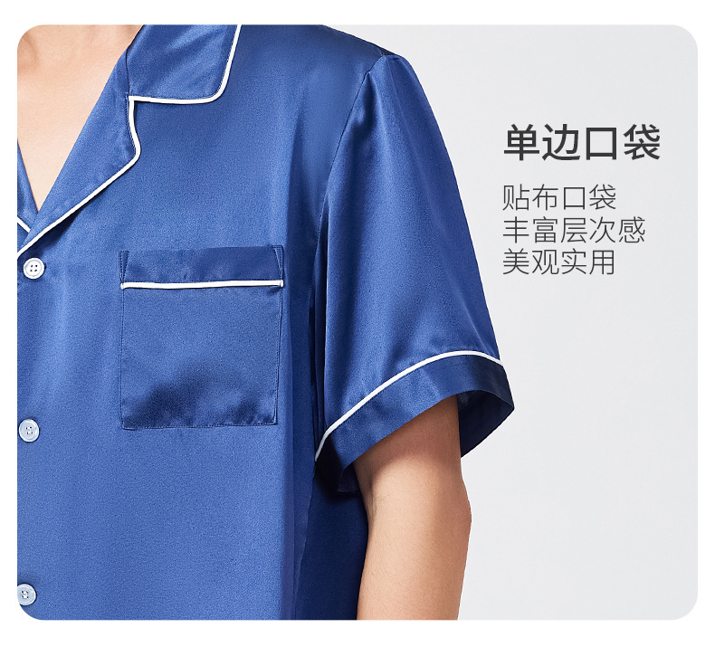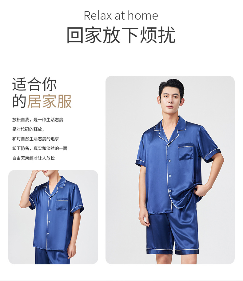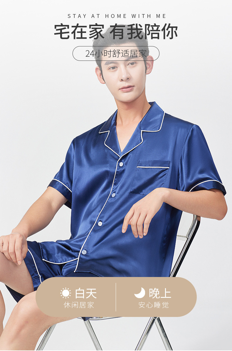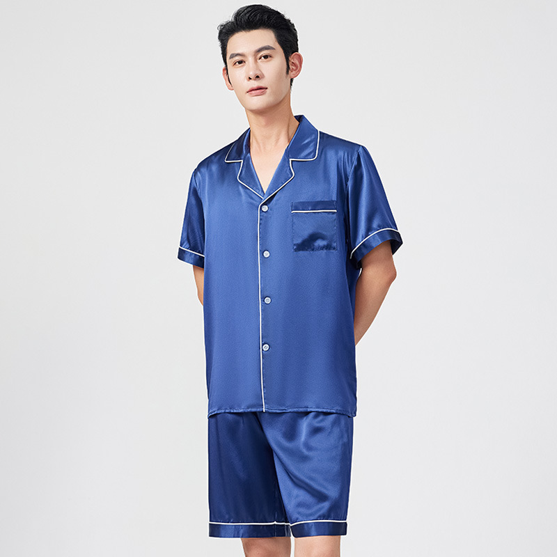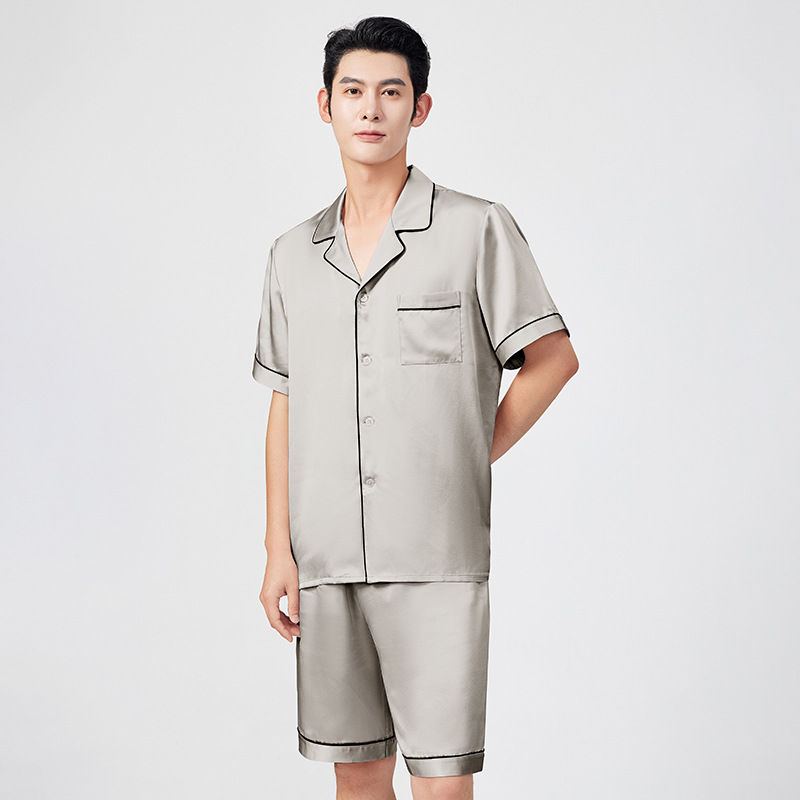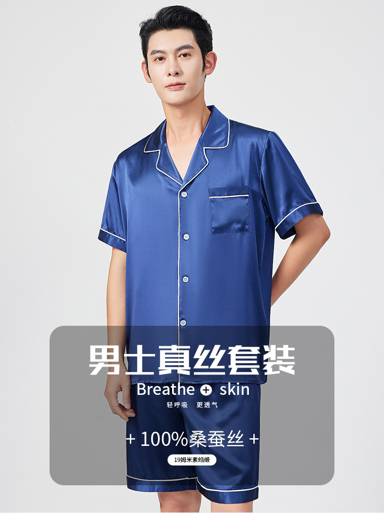 여름 100% 뽕나무 실크 파자마 남성용 얇은 통기성 반팔 반바지 투피스 캐주얼 홈 의류 세트스토어 가기