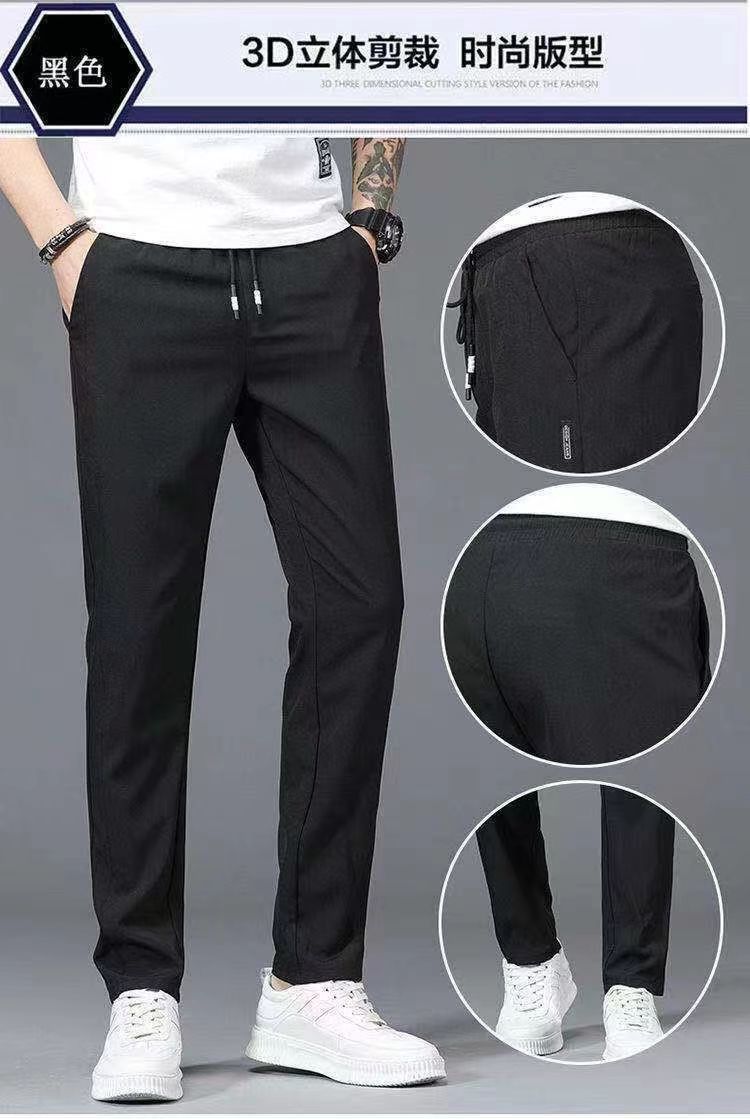 바지 남성 여름 얇은 캐주얼 바지 트렌디 스트레이트 9부 바지 속건성 남성 스포츠 바지 아이스 실크 남성 바지
