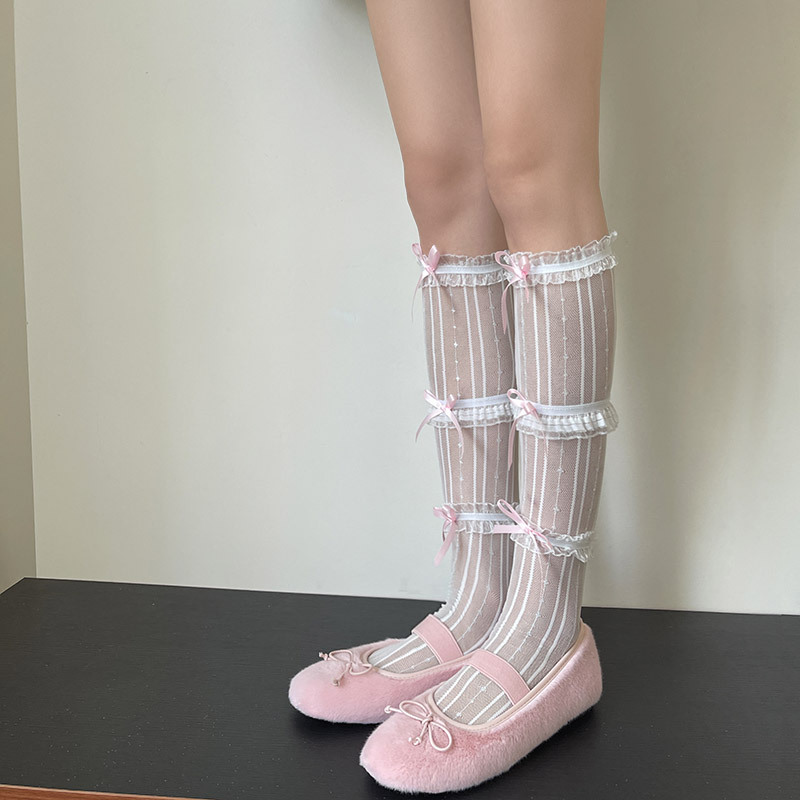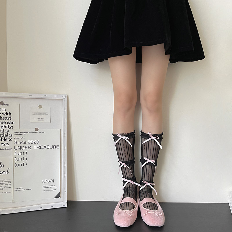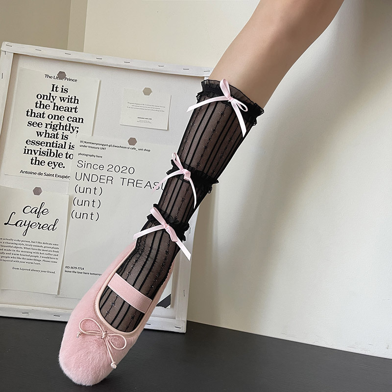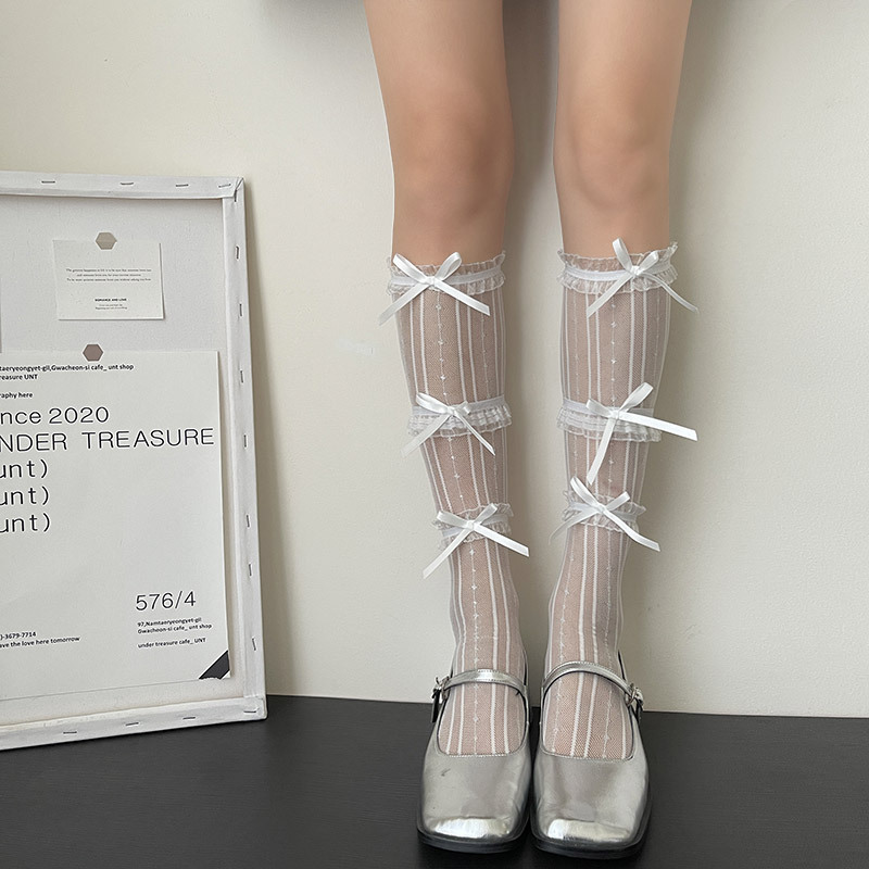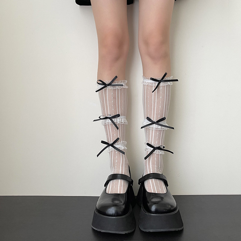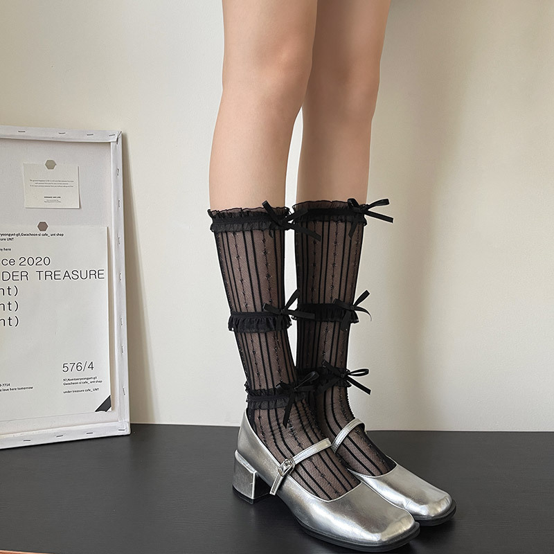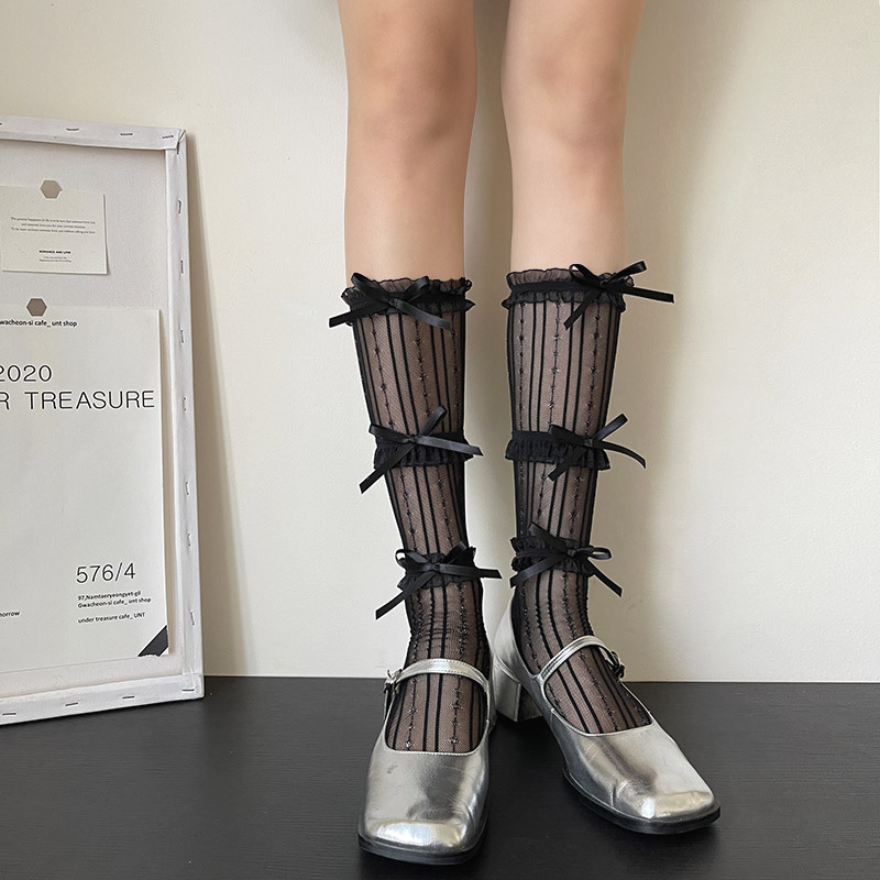 밀레니엄 Y2K 스파이스 걸스 레트로 레이스 3 층 레이스 얇은 소녀 로리타 미드 양말 섹시한 송아지 양말