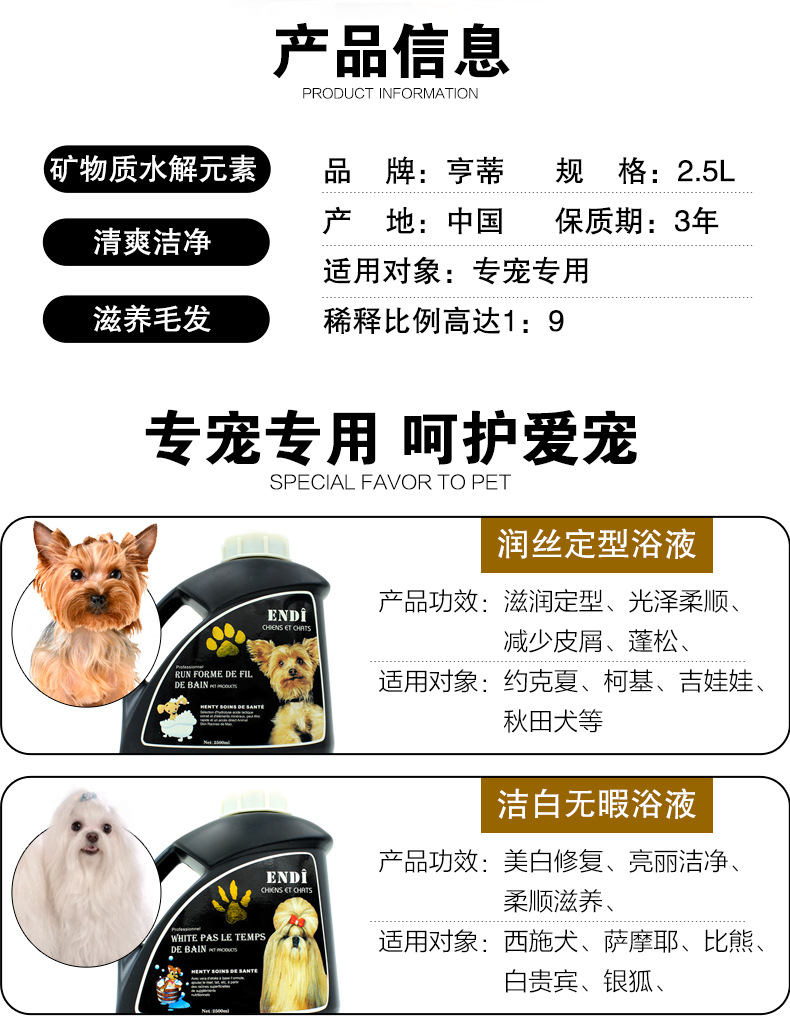 Hunty 애완 동물 상점 특수 개 샤워 젤 대형 배럴 2.5L 샴푸 오염 제거 및 향수 샴푸 목욕 도매스토어 가기