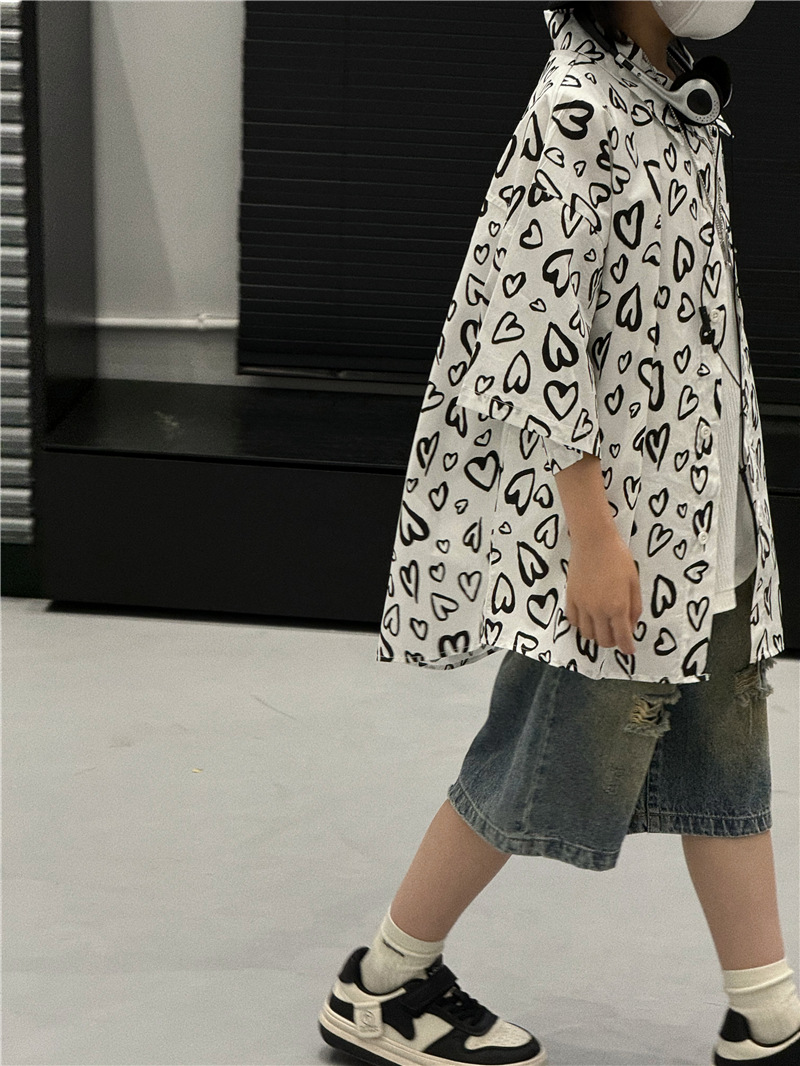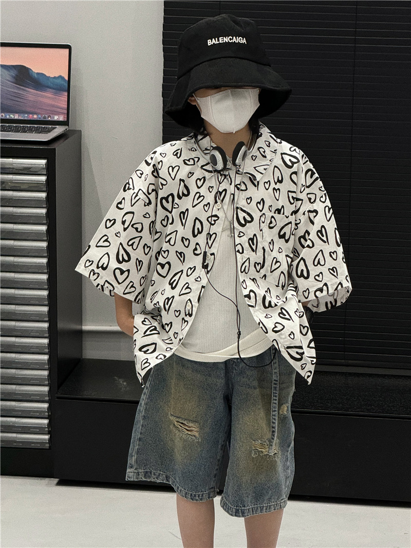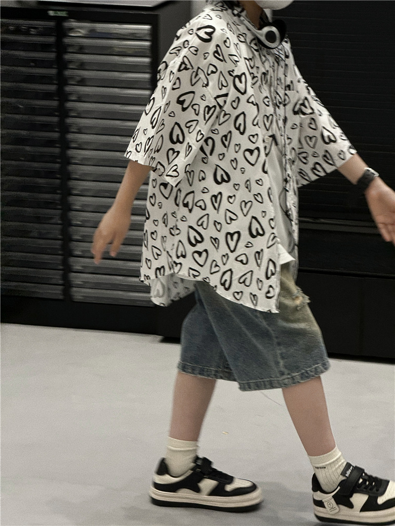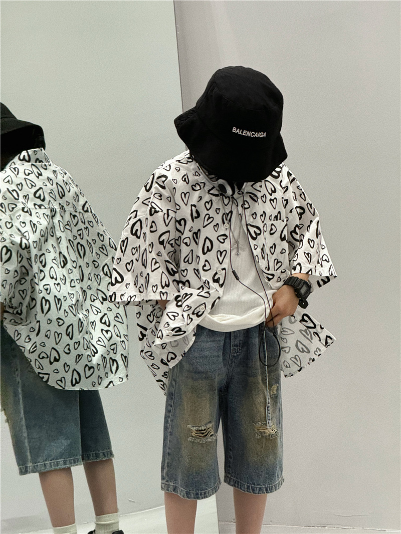 Baoduo 아동복 소년 여름 셔츠 2024 새로운 소년 여름 캐주얼 셔츠 아동 여름 스타일 중소형 아동 트렌드스토어 가기
