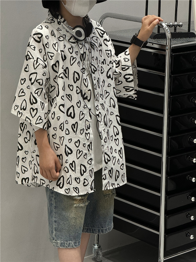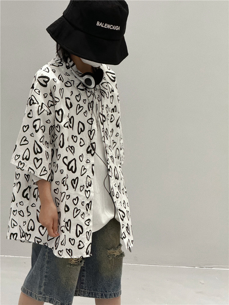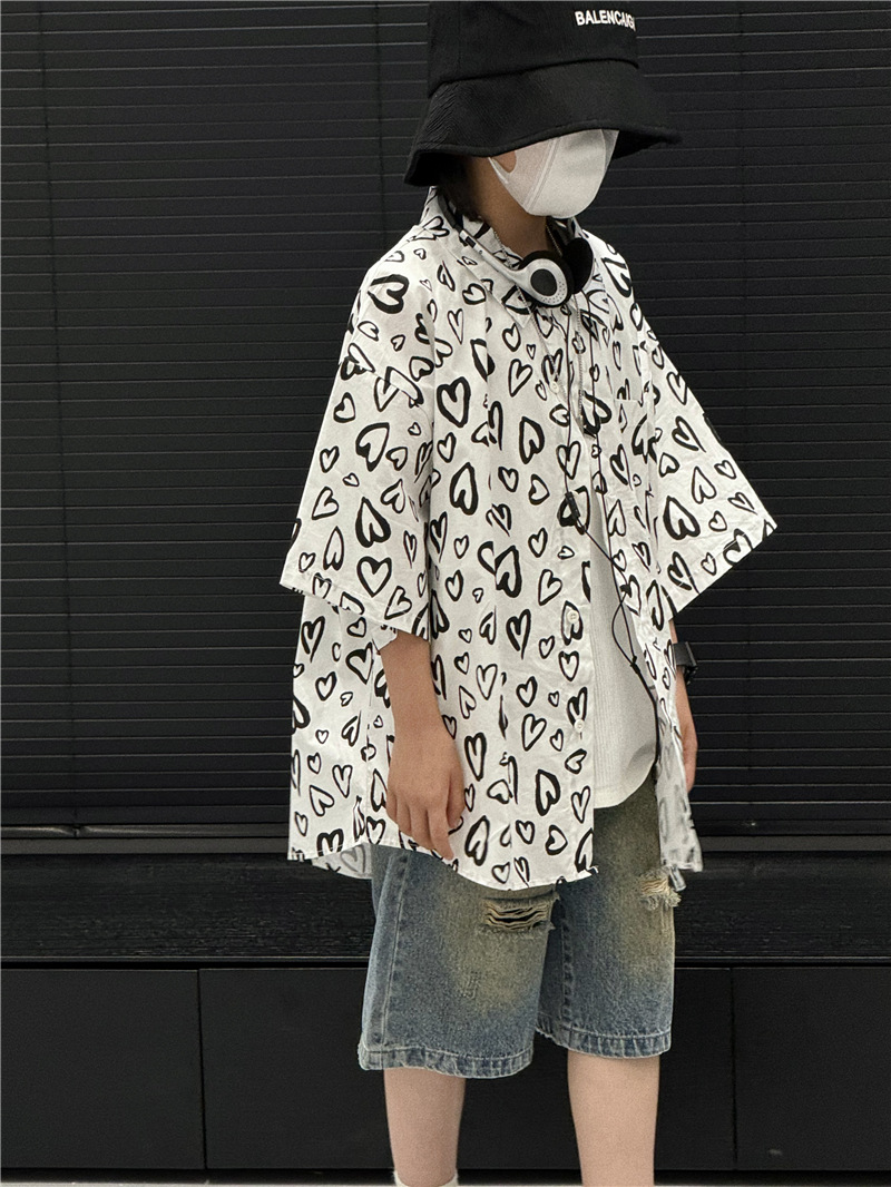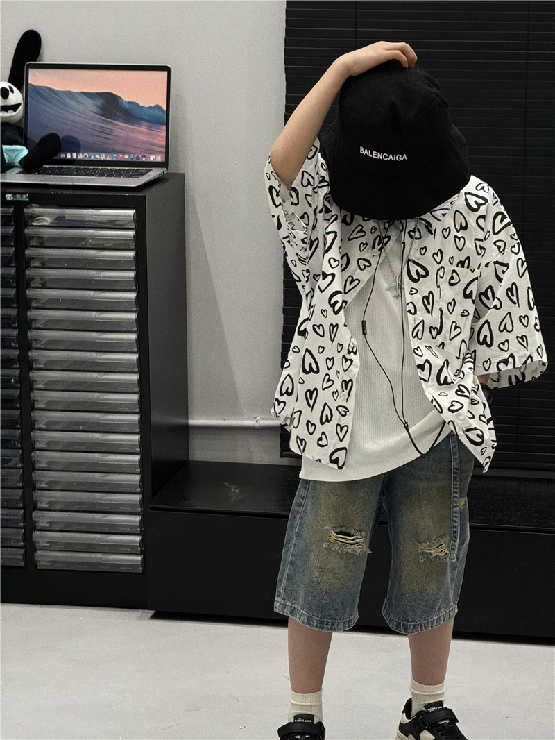 Baoduo 아동복 소년 여름 셔츠 2024 새로운 소년 여름 캐주얼 셔츠 아동 여름 스타일 중소형 아동 트렌드스토어 가기