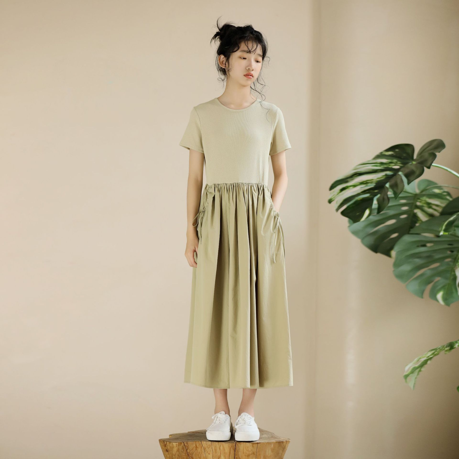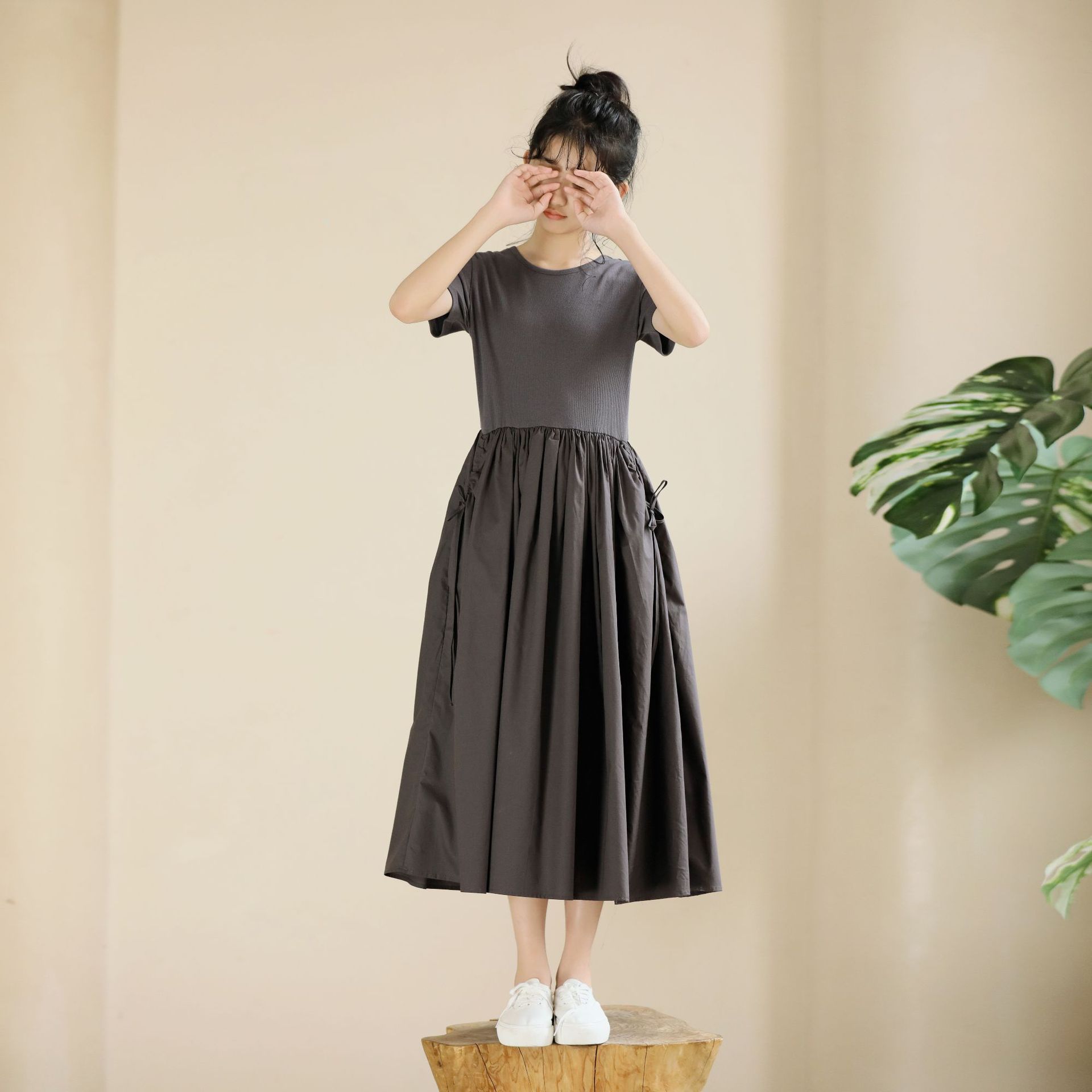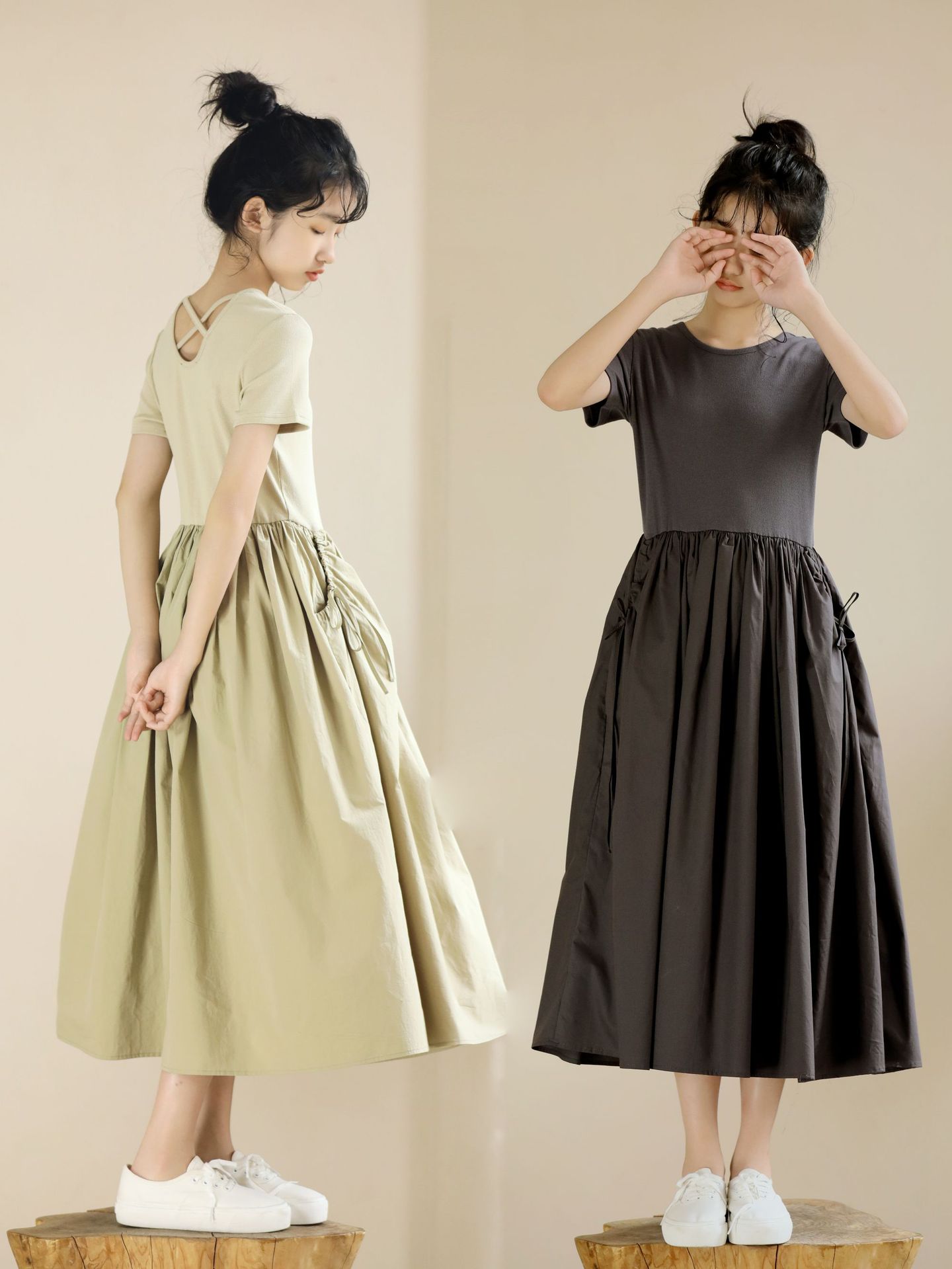 고품질 소녀의 긴 허리 대형 스커트 드레스 반팔 고탄력 포켓 드로스트링 슬리밍 투투 스커트