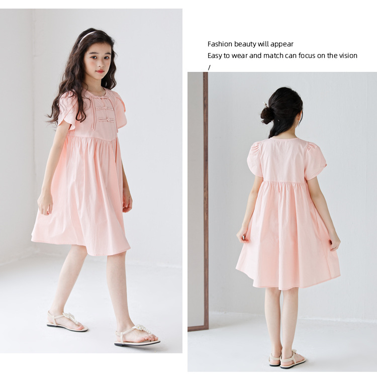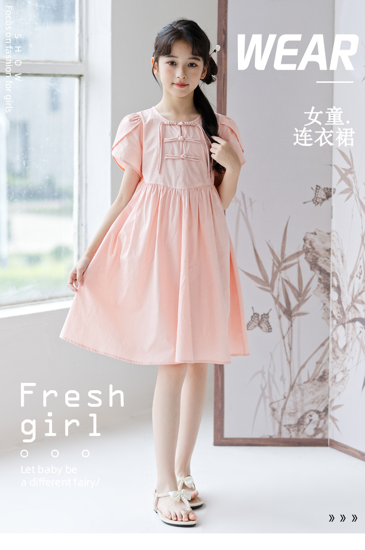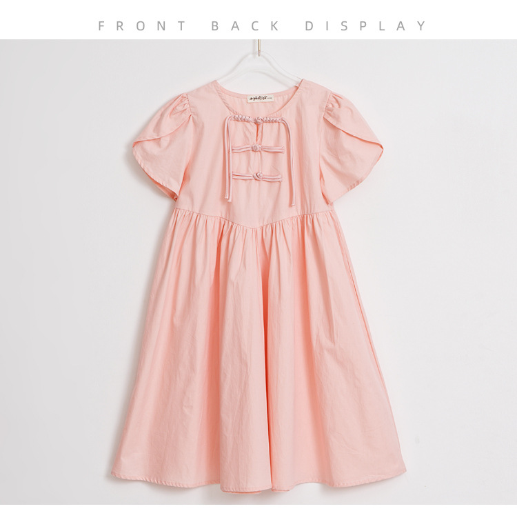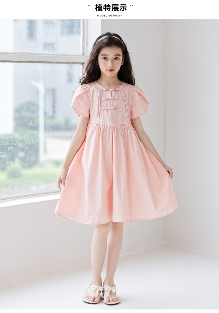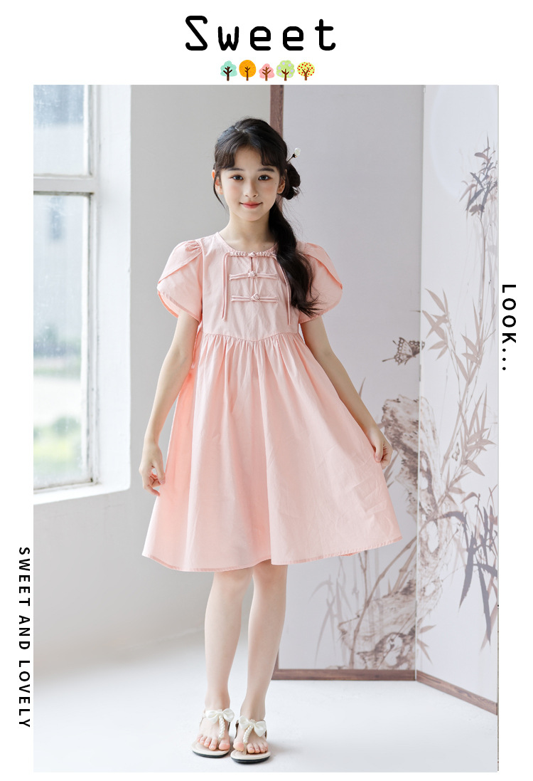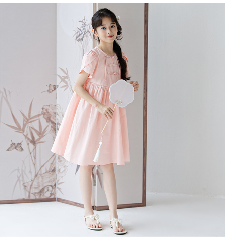 소녀 여름 원피스 새로운 중국 스타일 원피스 2024 새로운 중국 스타일 공주 원피스 여름 큰 어린이 버클 스커트스토어 가기