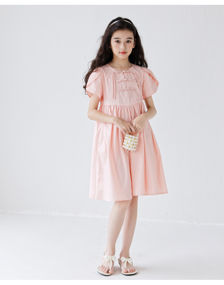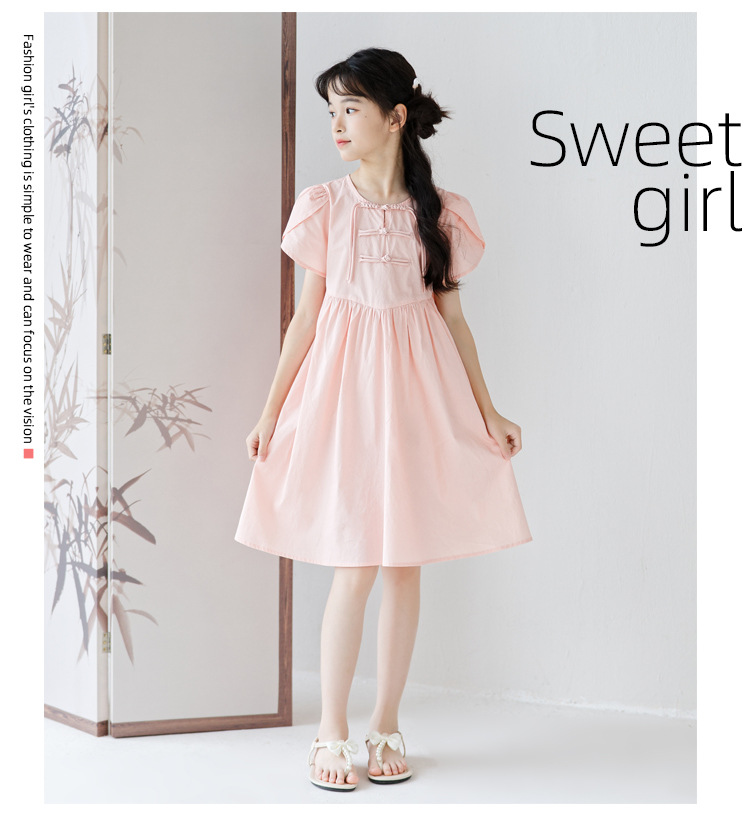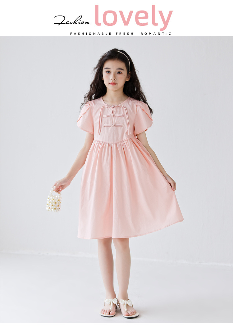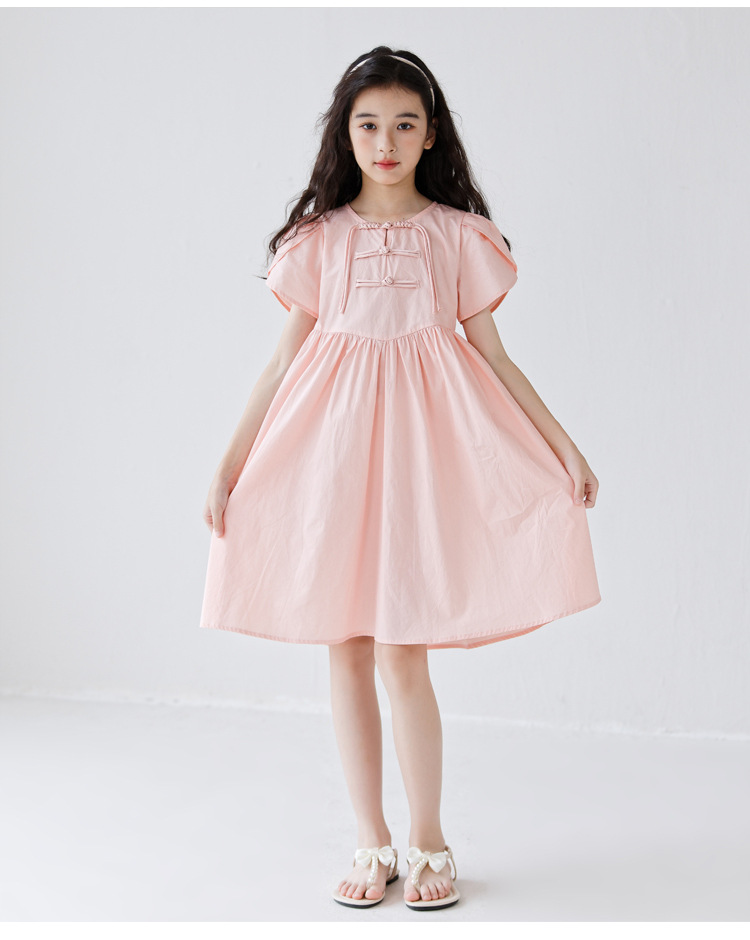 소녀 여름 원피스 새로운 중국 스타일 원피스 2024 새로운 중국 스타일 공주 원피스 여름 큰 어린이 버클 스커트