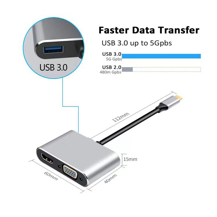 Type 4-in -1 도킹 스테이션 TYPE to HDMI/VGA/USB3.0/PD 고속 충전 3.0HUB 허브 4-in -1스토어 가기