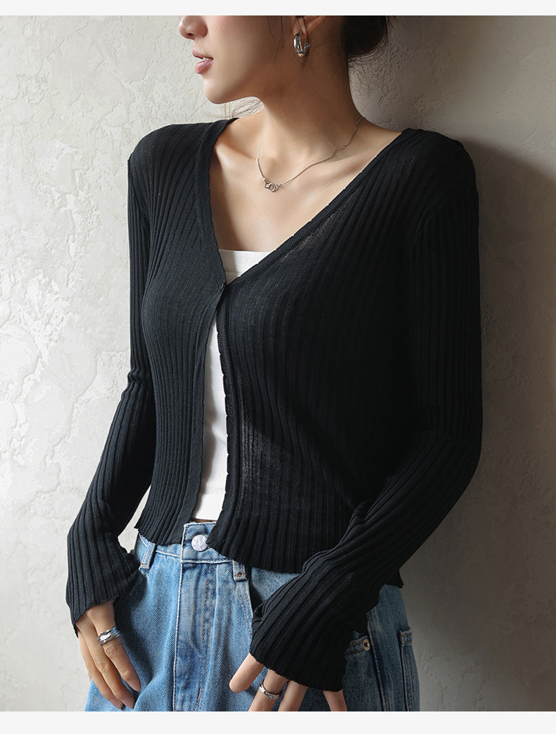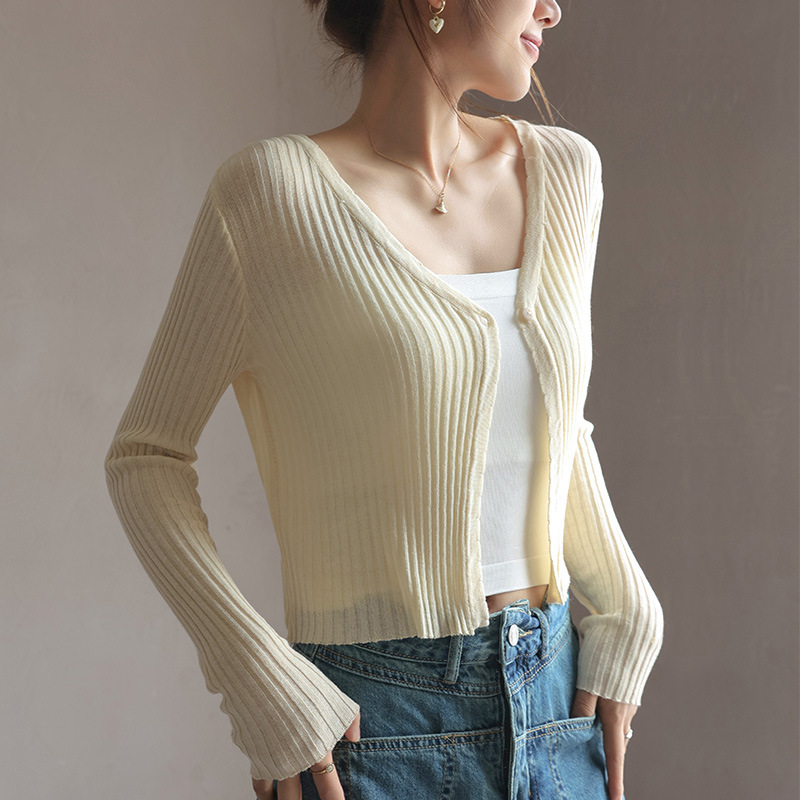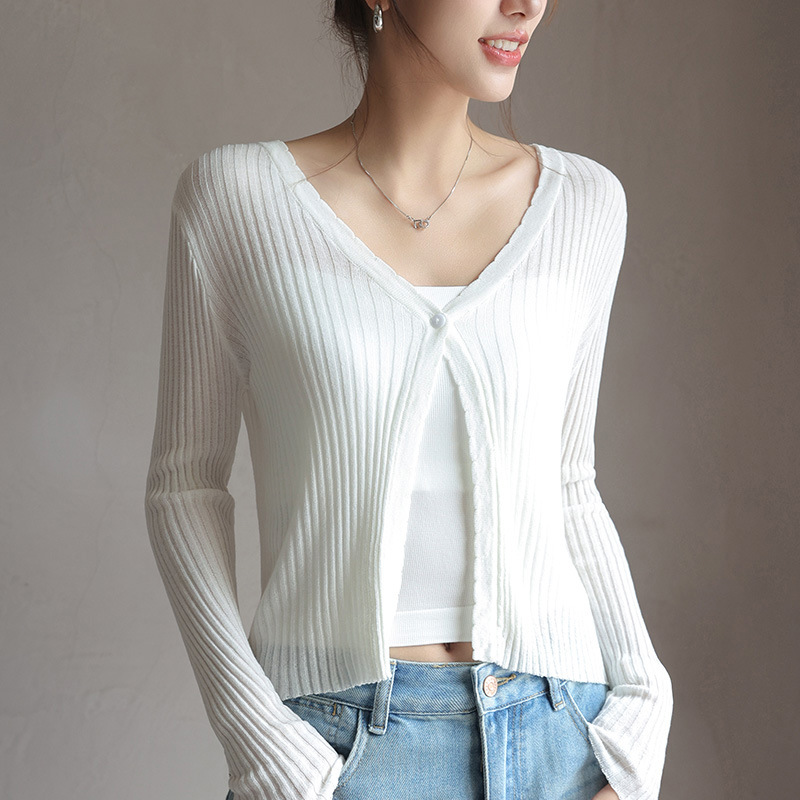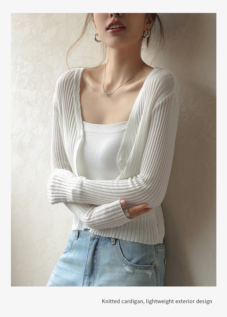 아이스 실크 니트 카디건 여성용 얇은 여름 하이 엔드 슬링 원피스 외부 싱글 브레스트 숄리 스웨터