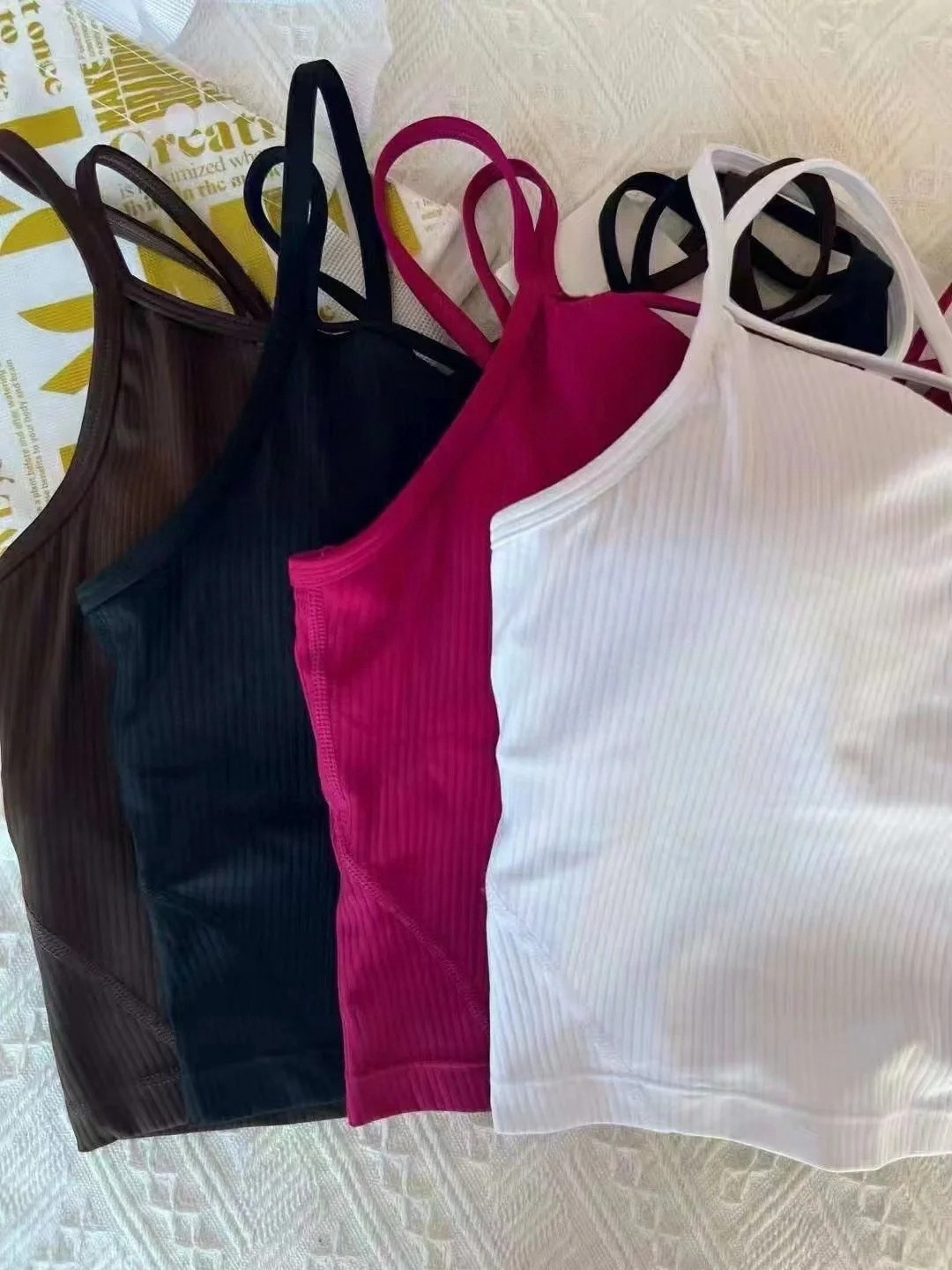 룰루다링 요가 스포츠 탱크탑 크로스 브라탑 멋진 등 디자인 외출용 숏탑스토어 가기
