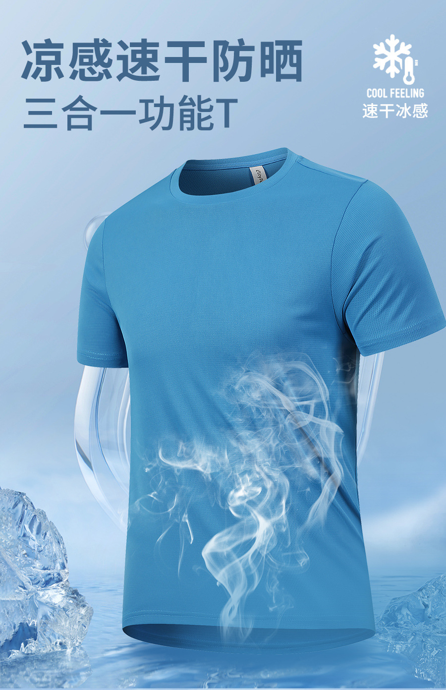 남성용 속건성 라운드넥 반팔 티셔츠, 여름 야외 스포츠 자외선 차단, 젊은 남성을 위한 흡습 및 땀 배출 기능성 베이스 레이어 티셔츠