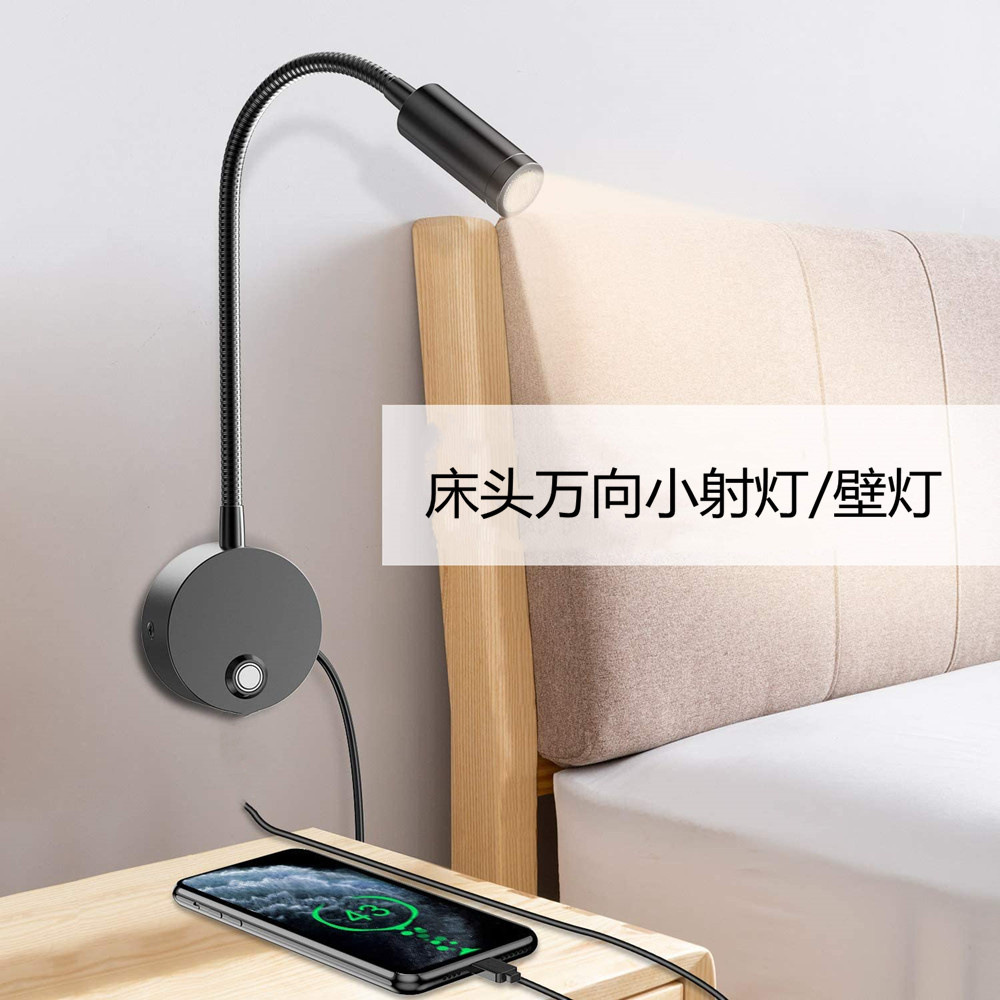 침대 옆 독서용 벽등, 침실 호텔 객실 침대 옆 독서등, 구즈넥 플렉시블 스포트라이트, 실내 벽등, 3W 야간등