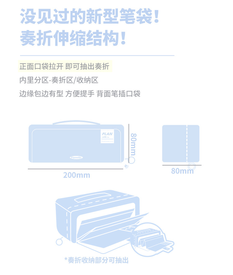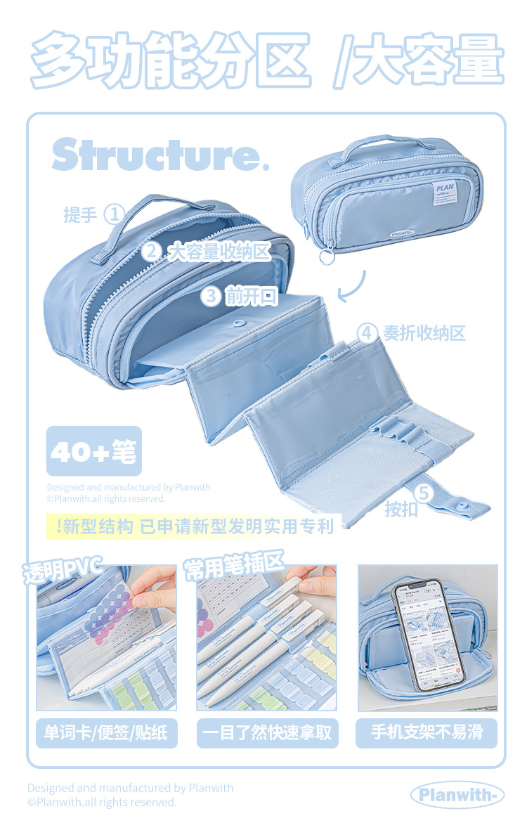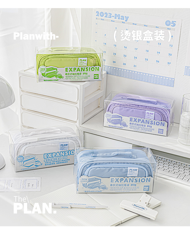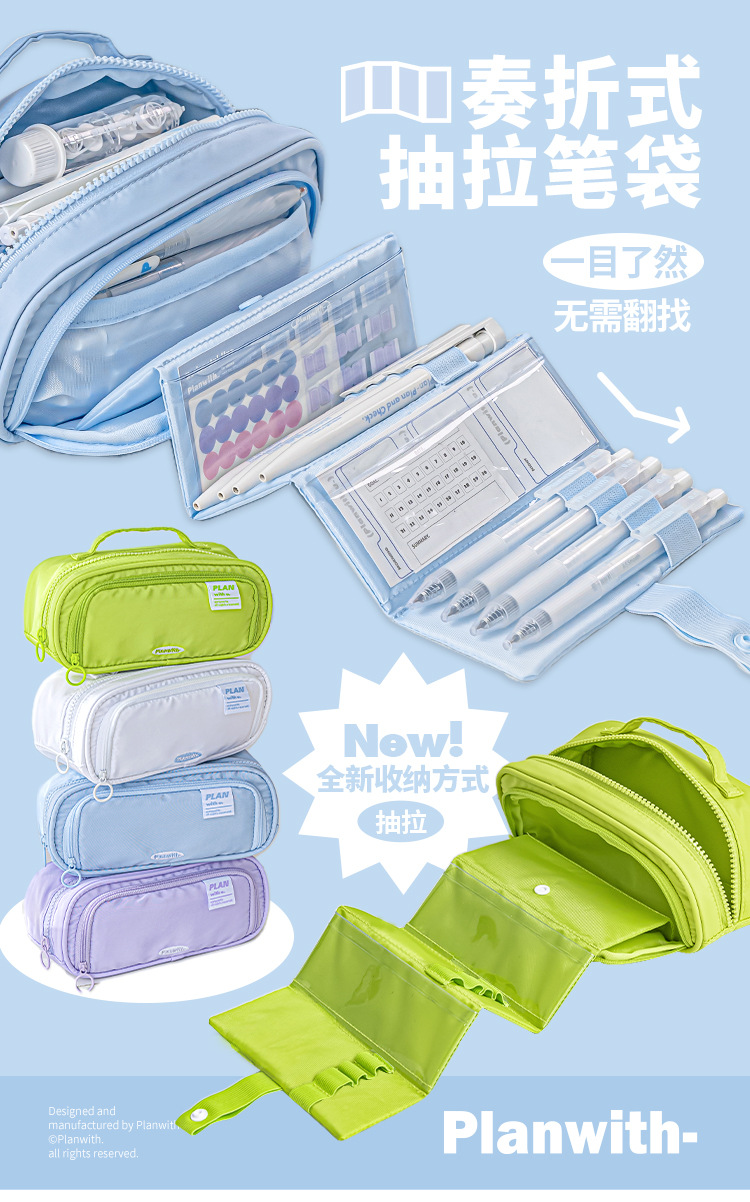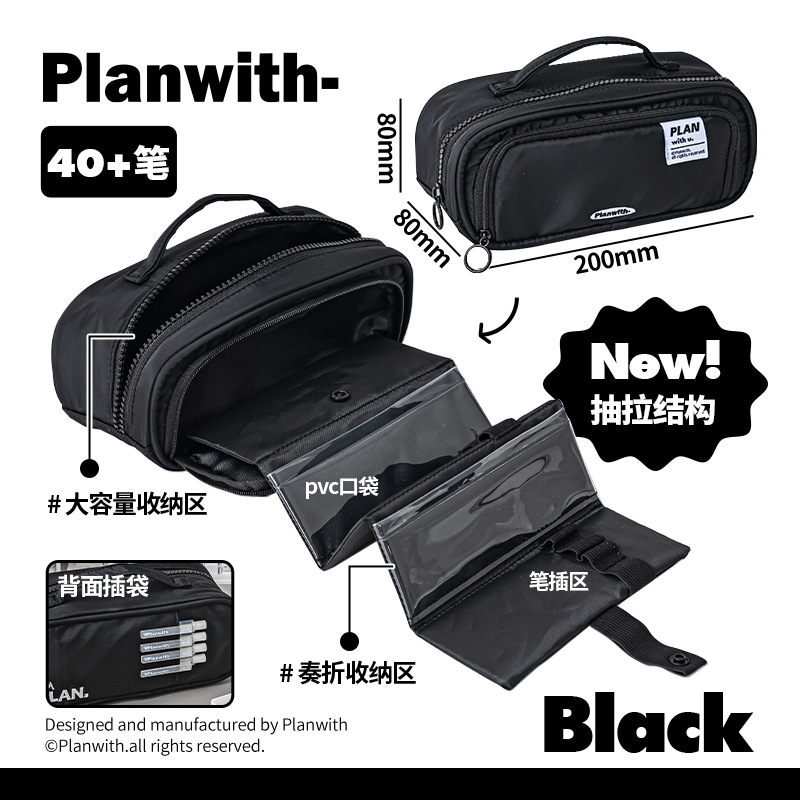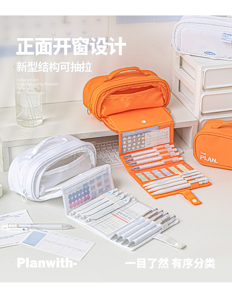 Planwith 펜 가방 높은 색상 가치 감소 망원경 저장 대용량 저장 문구 펜 가방스토어 가기
