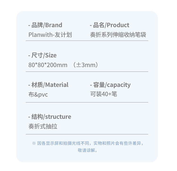 Planwith 펜 가방 높은 색상 가치 감소 망원경 저장 대용량 저장 문구 펜 가방