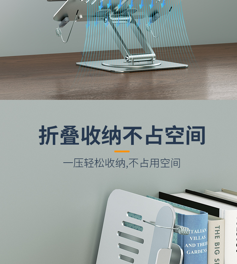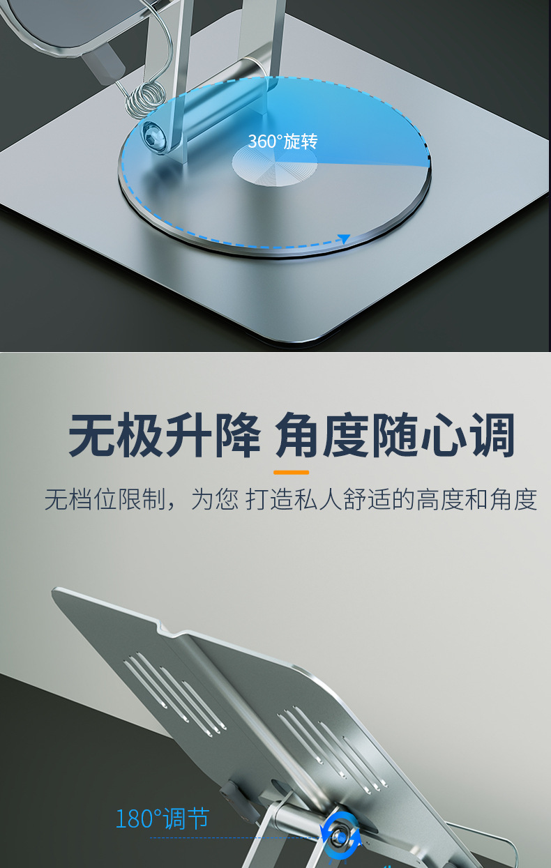 알루미늄 합금 독서 스탠드 노트북 랙 보편적 인 리프팅 회전 접이식 학습 엔터테인먼트 독서 책장 도매스토어 가기