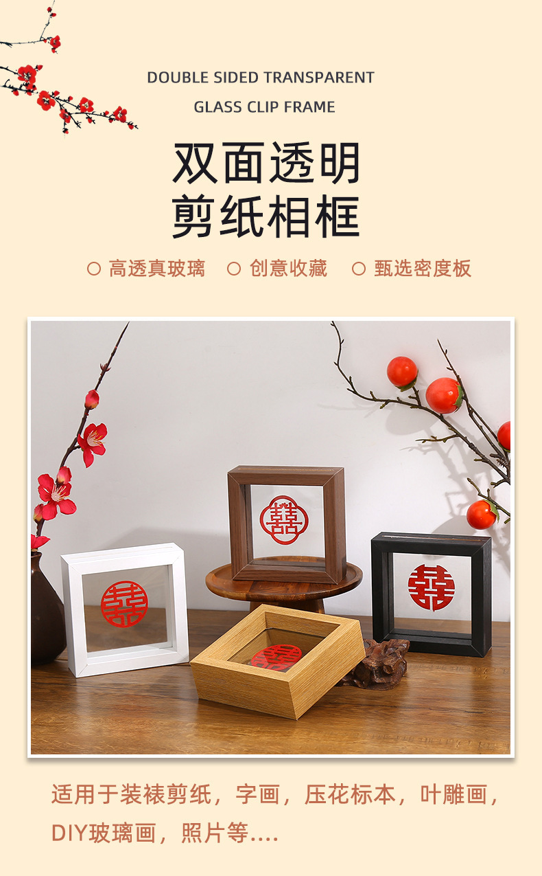 양면 투명 유리 행복 단어 종이 컷 DIY 사진 프레임 테이블 장식품 도매 식물 표본 프레임 그림 프레임스토어 가기