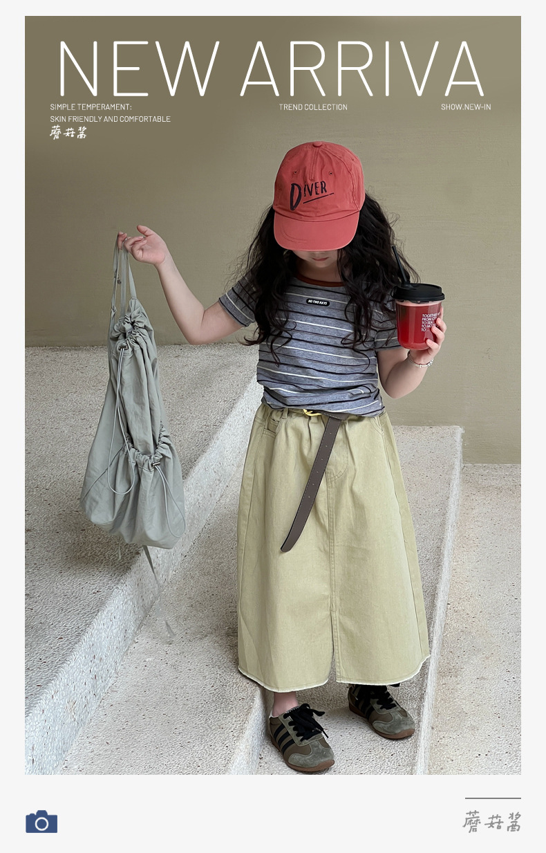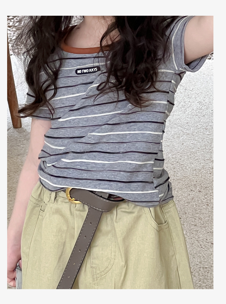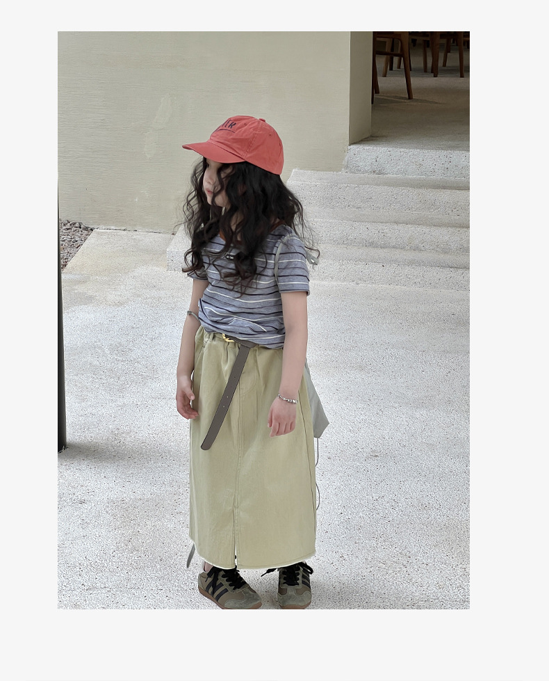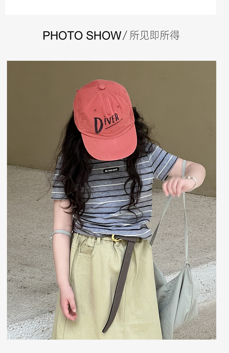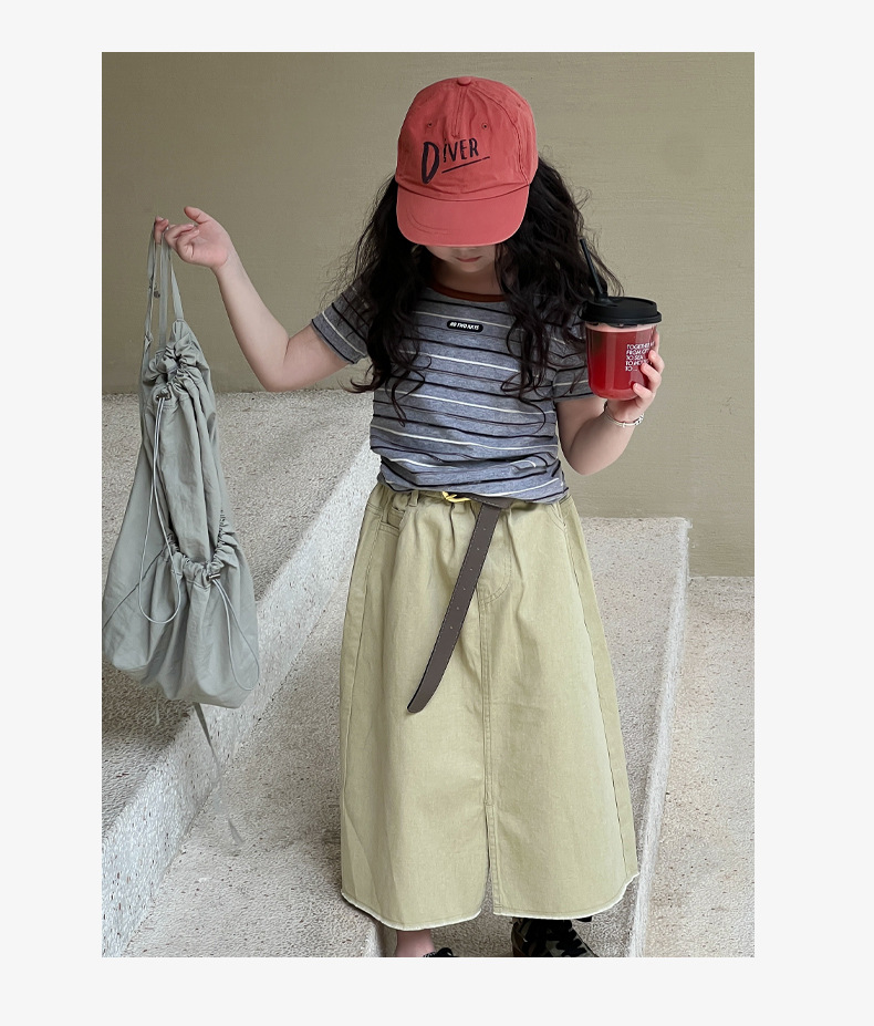 여아용 한국 스타일 티셔츠 2025 여름 신상 아동용 세련된 입체 스트라이프 반팔 중대형 아동용 패셔너블 여름옷 트렌디 티셔츠