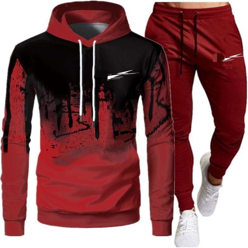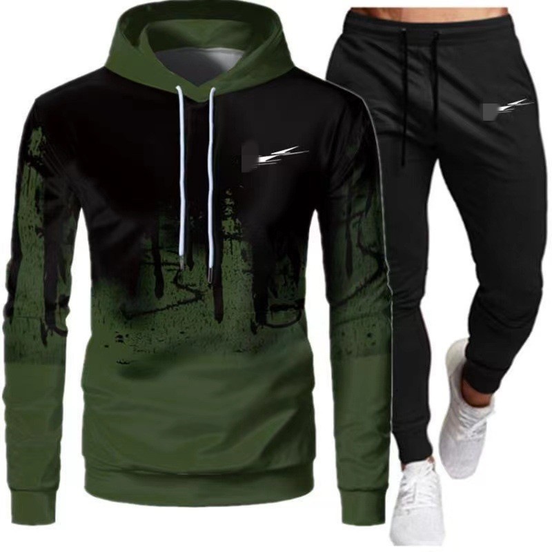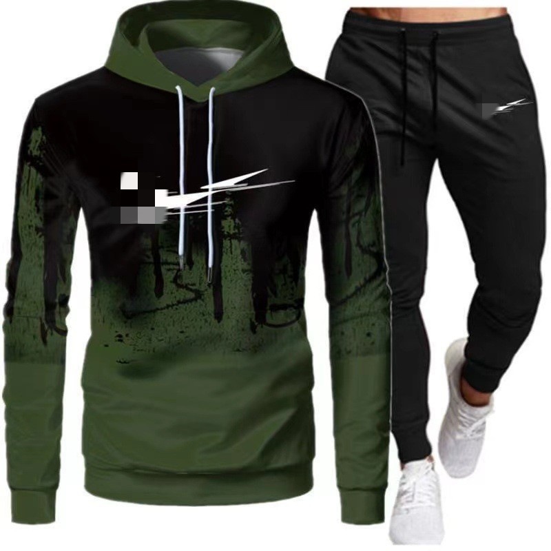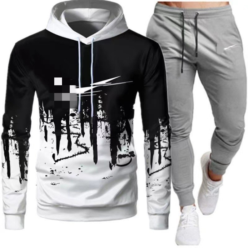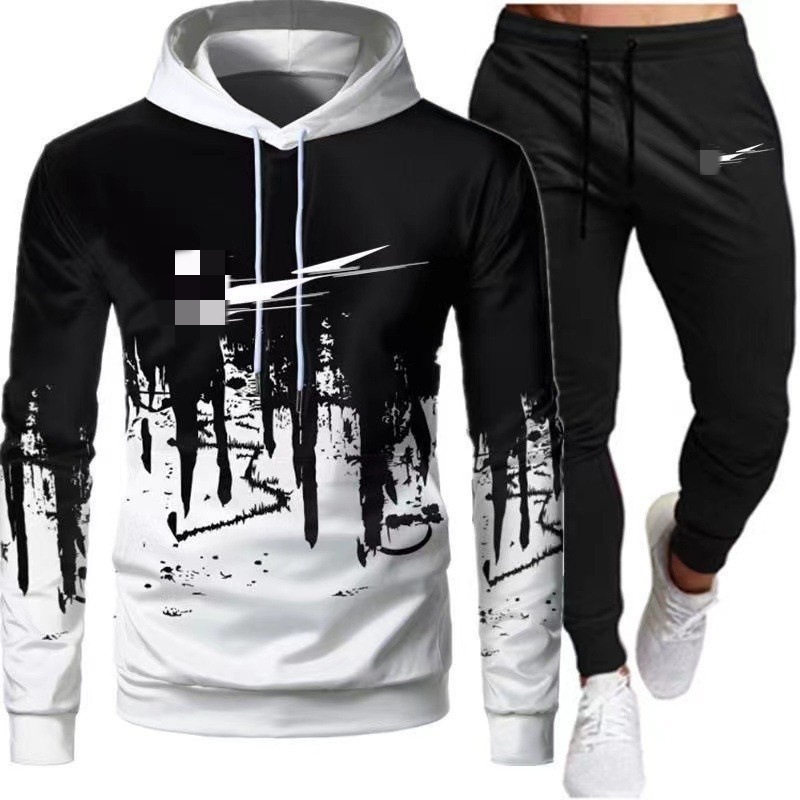 2024 새로운 가을 긴 소매 바지 재킷 유행 후드 스포츠 캐주얼 인쇄 세트 남성 공장 재고스토어 가기
