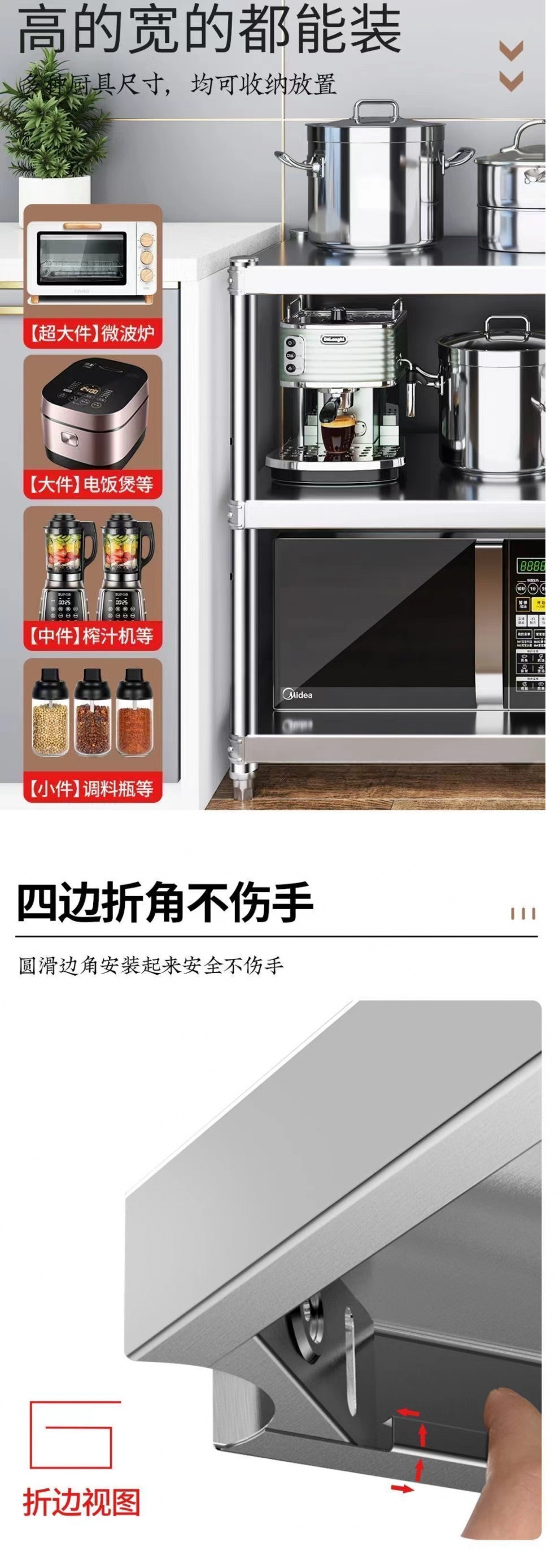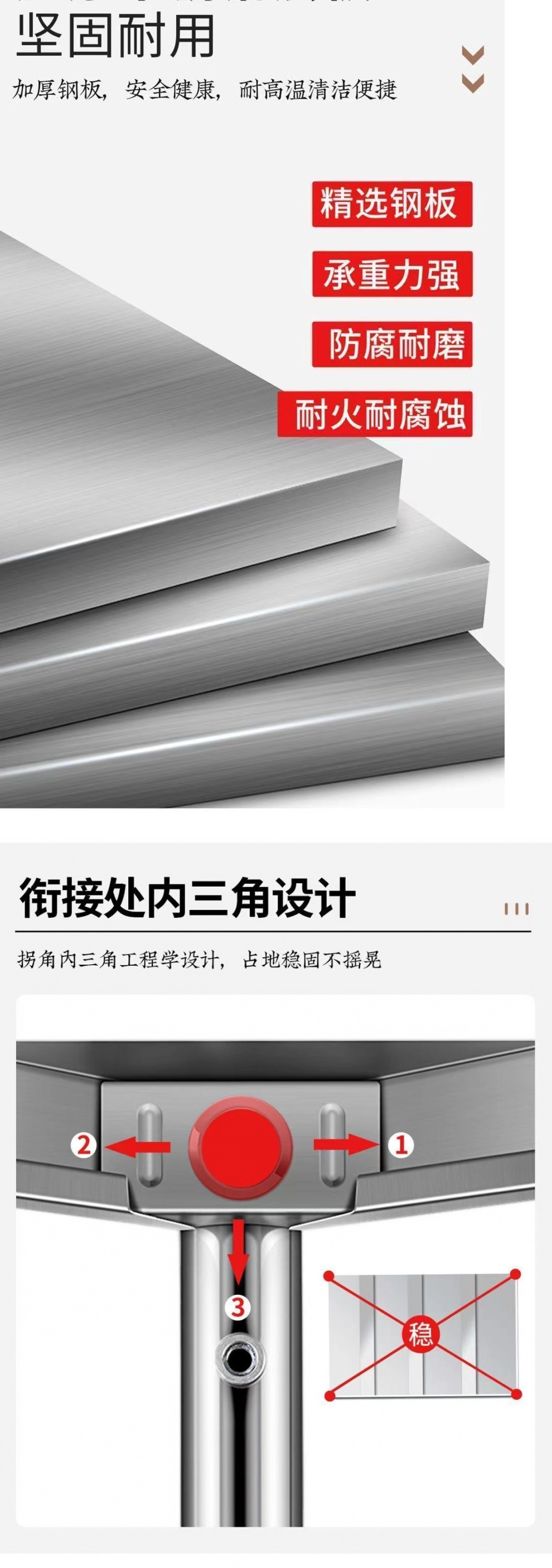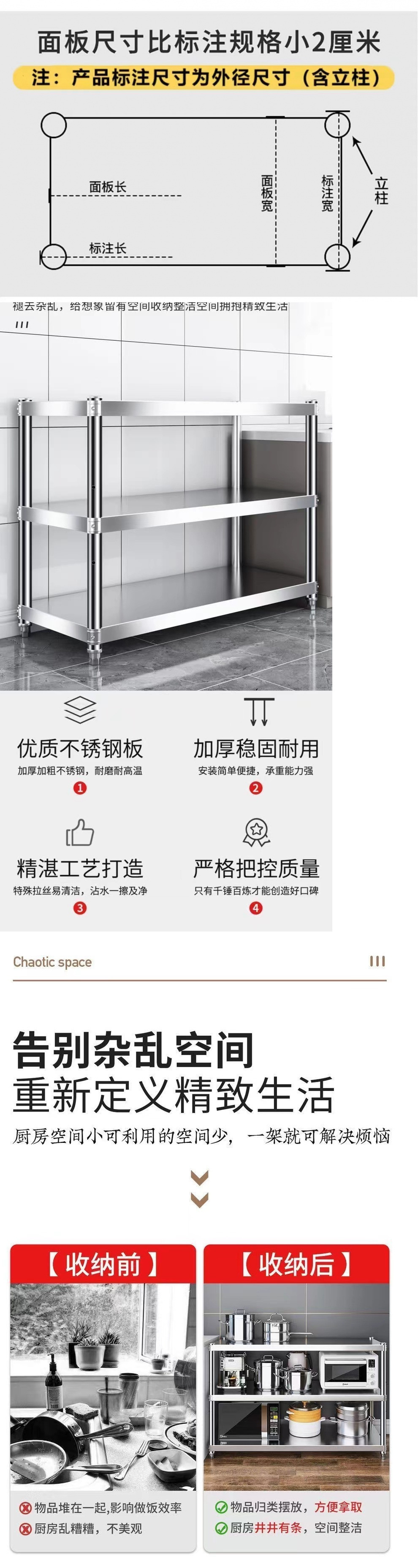 스테인레스 스틸 스토리지 랙 주방 상자 보드 작업대 특수 테이블 상업용 더블 레이어 직사각형 선반 3 층 조리대