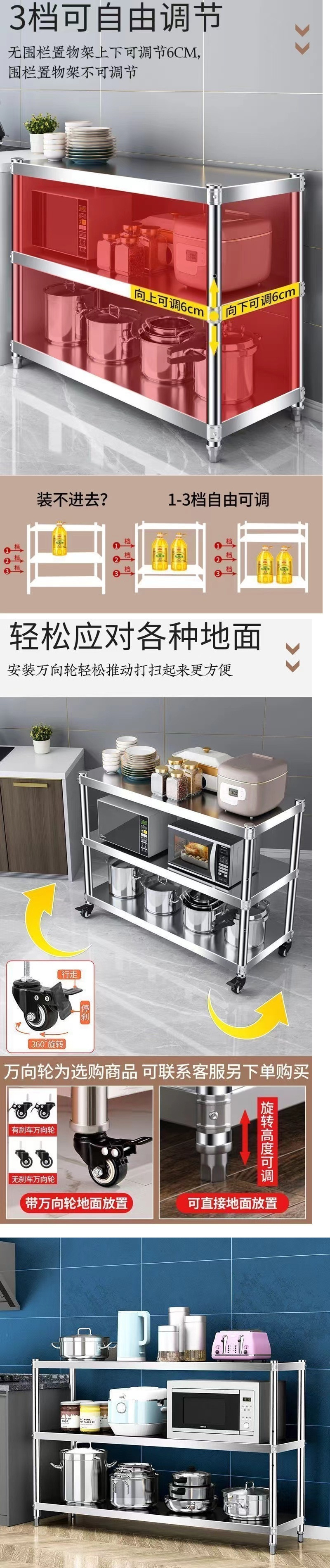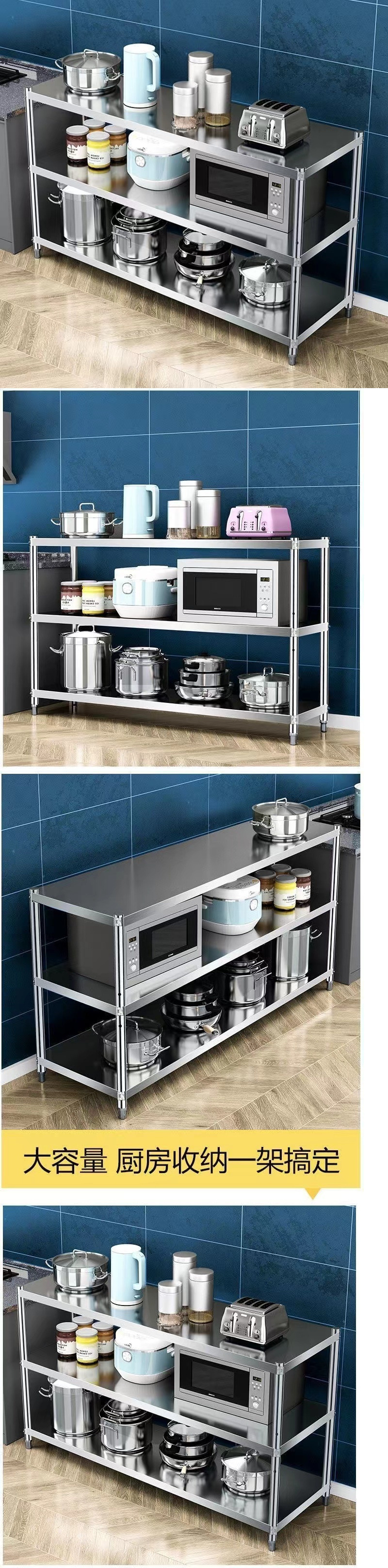 스테인레스 스틸 스토리지 랙 주방 상자 보드 작업대 특수 테이블 상업용 더블 레이어 직사각형 선반 3 층 조리대스토어 가기