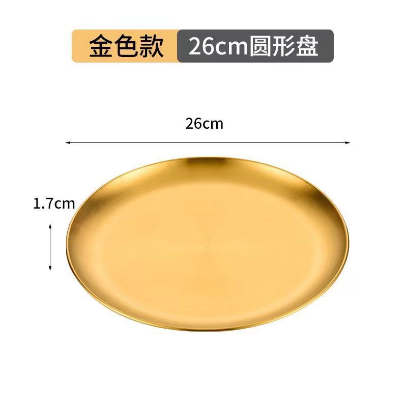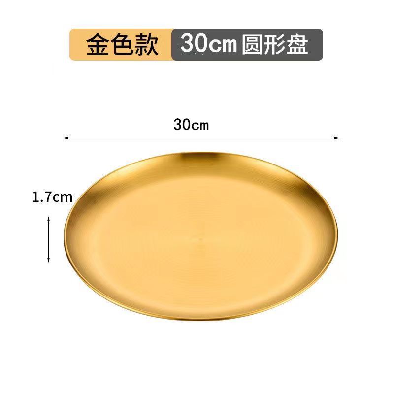 두꺼운 금색 단층 원형 디저트 접시, 양식 접시, 야외 캠핑 바베큐 접시, 한국식 스테인리스 바베큐 접시스토어 가기