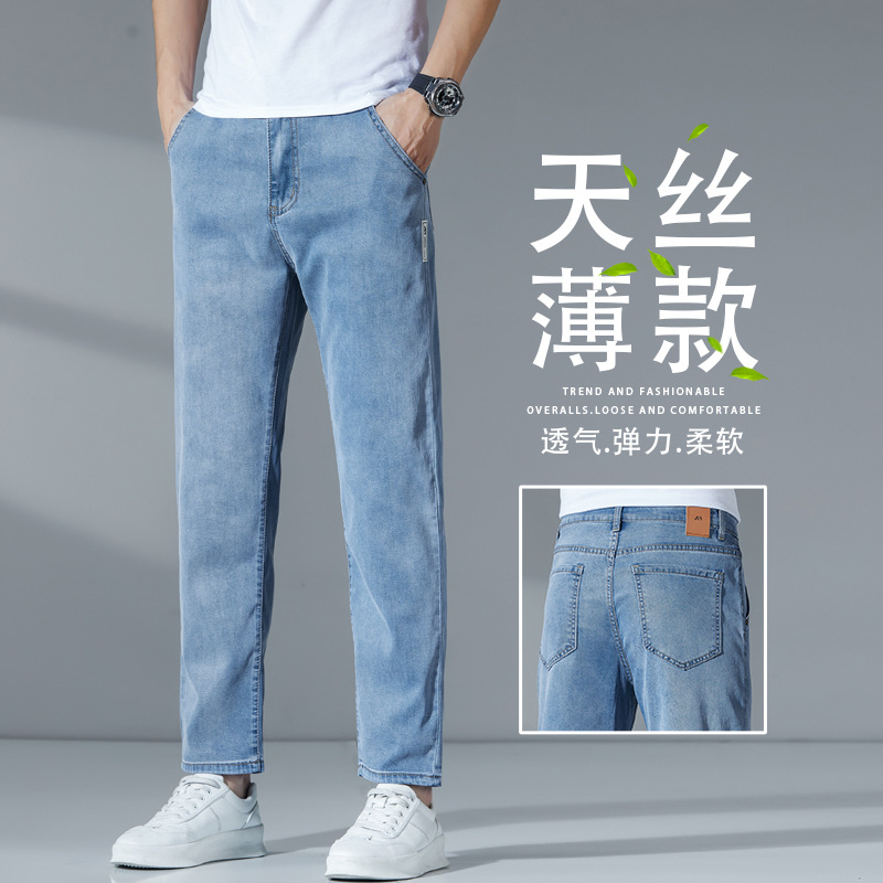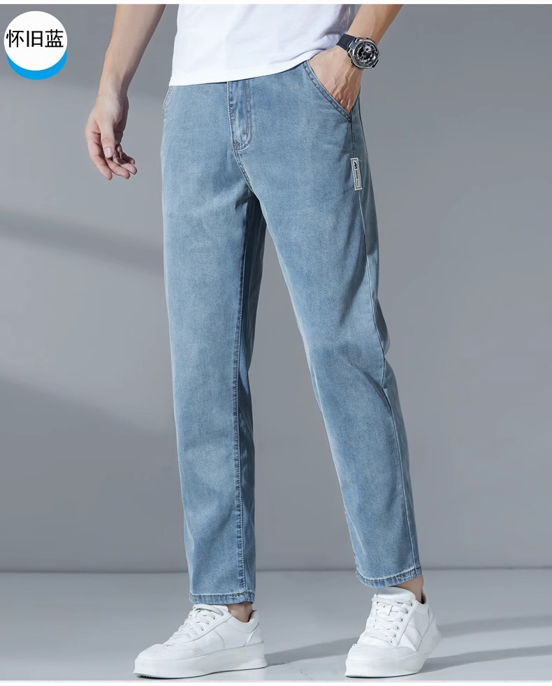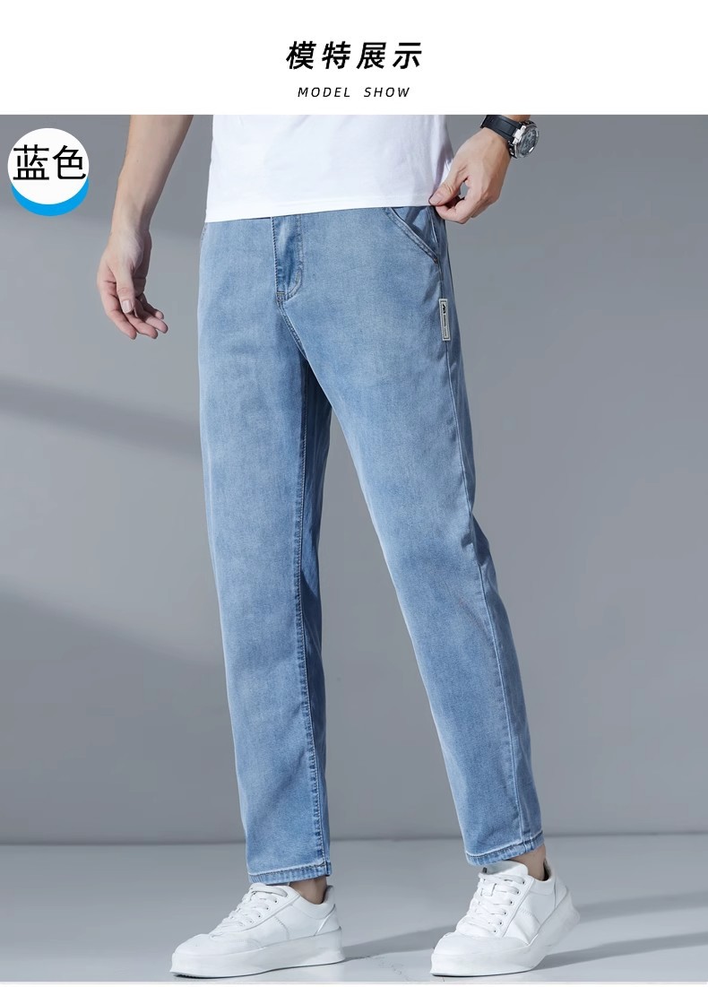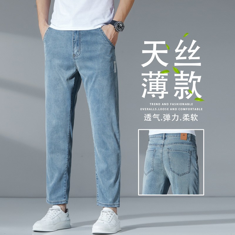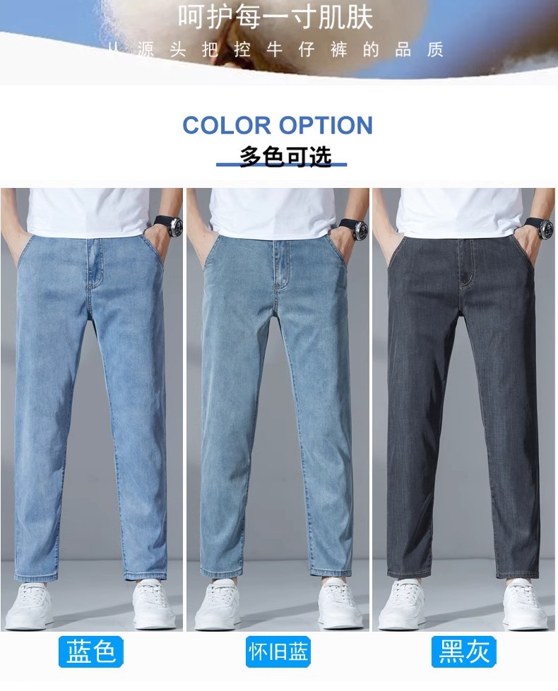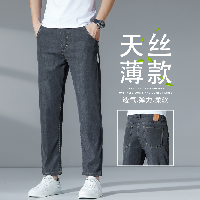 하이 엔드 9 점 청바지 남성용 슬림 스트레치 스트레이트 튜브 Tencel 얇은 비즈니스 캐주얼 9 점 바지스토어 가기