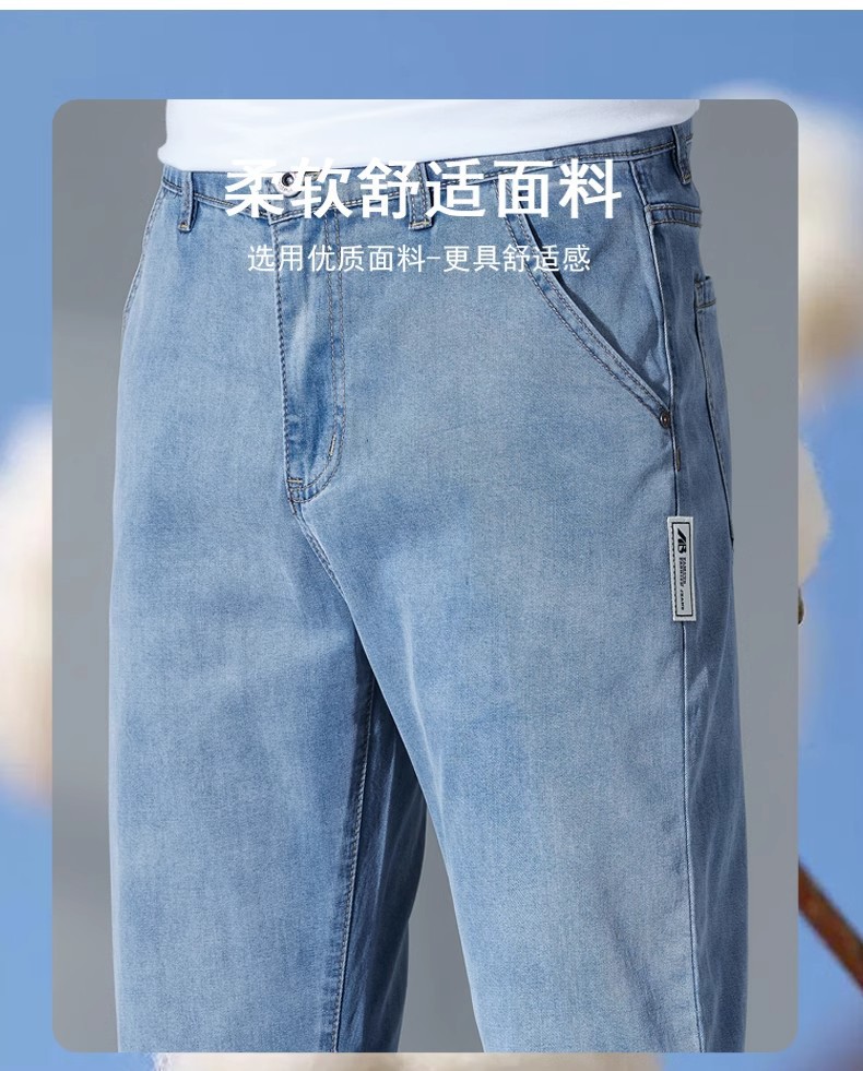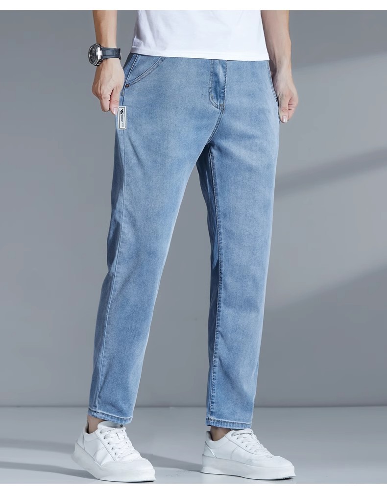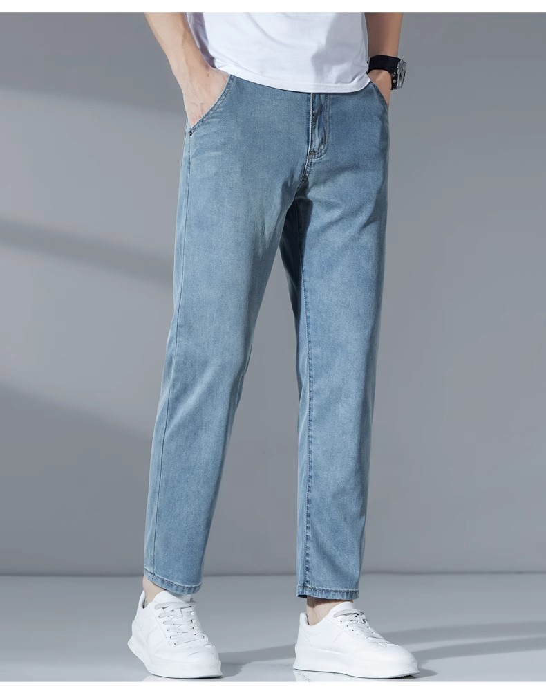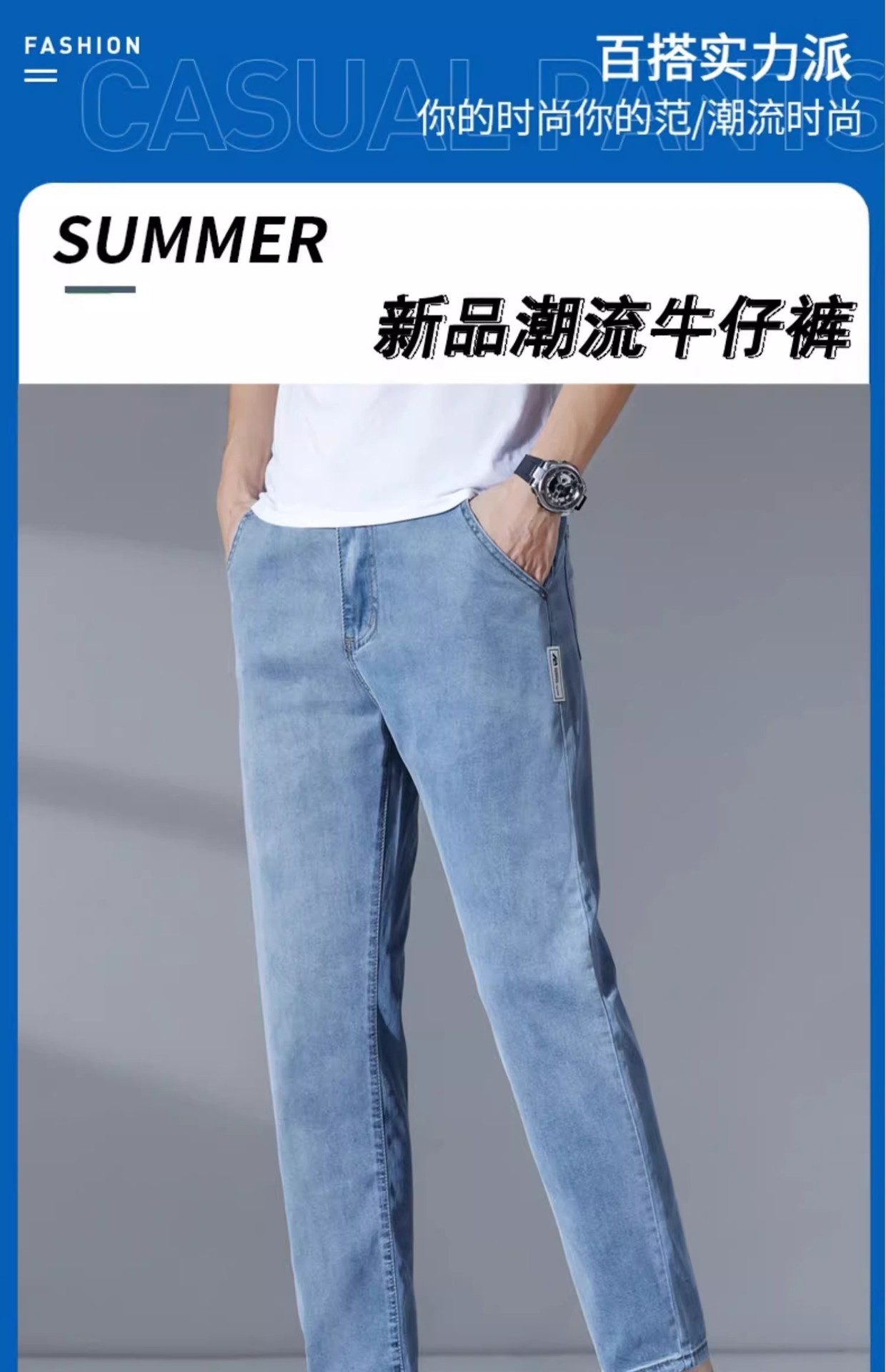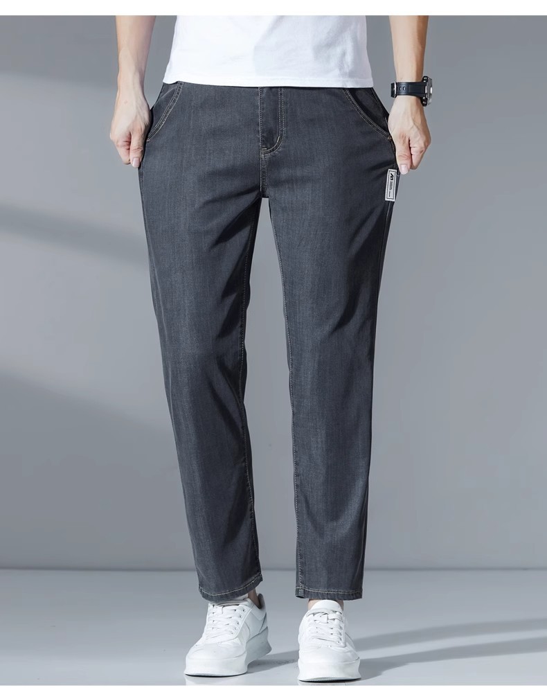 하이 엔드 9 점 청바지 남성용 슬림 스트레치 스트레이트 튜브 Tencel 얇은 비즈니스 캐주얼 9 점 바지스토어 가기