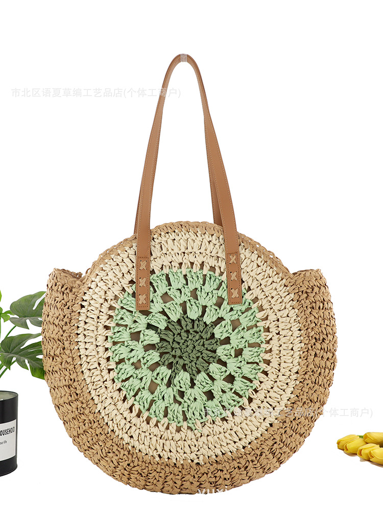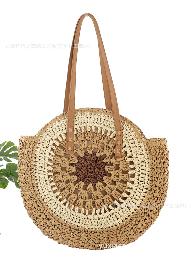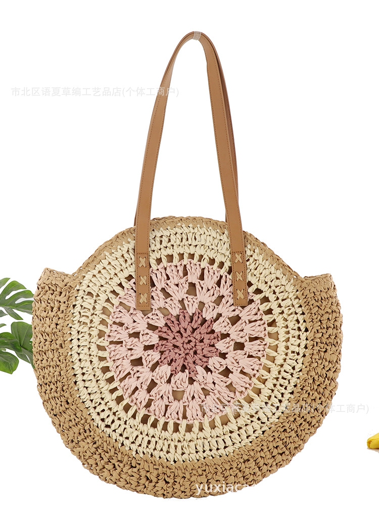 새로운 종이 로프 크로 셰 뜨개질 컬러 대형 디스크 밀짚 가방 캐주얼 비치 백 단일 어깨 패션 짠 가방 여성용 가방스토어 가기
