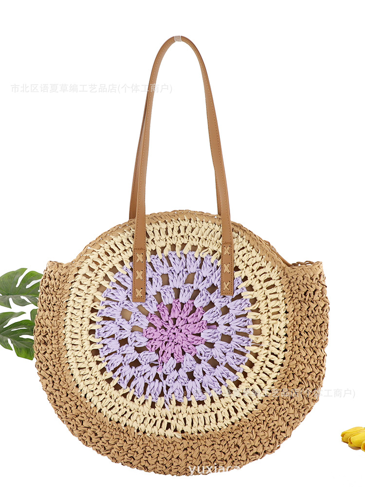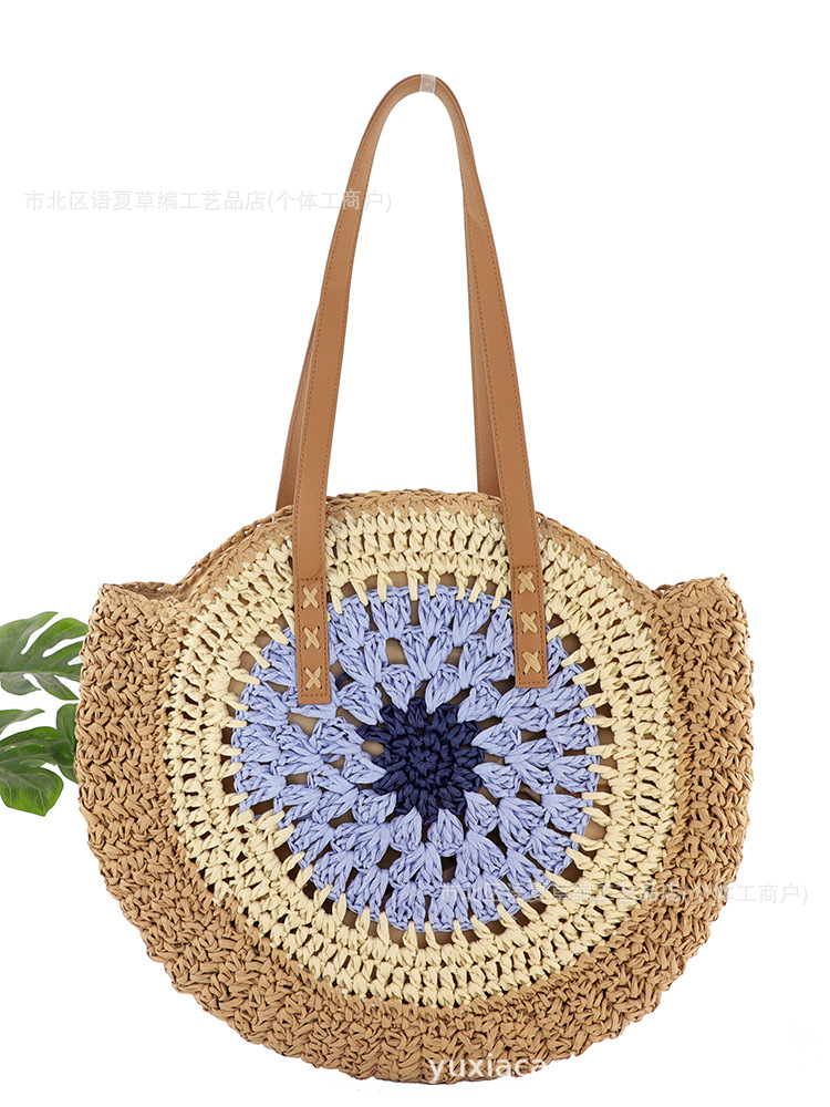 새로운 종이 로프 크로 셰 뜨개질 컬러 대형 디스크 밀짚 가방 캐주얼 비치 백 단일 어깨 패션 짠 가방 여성용 가방