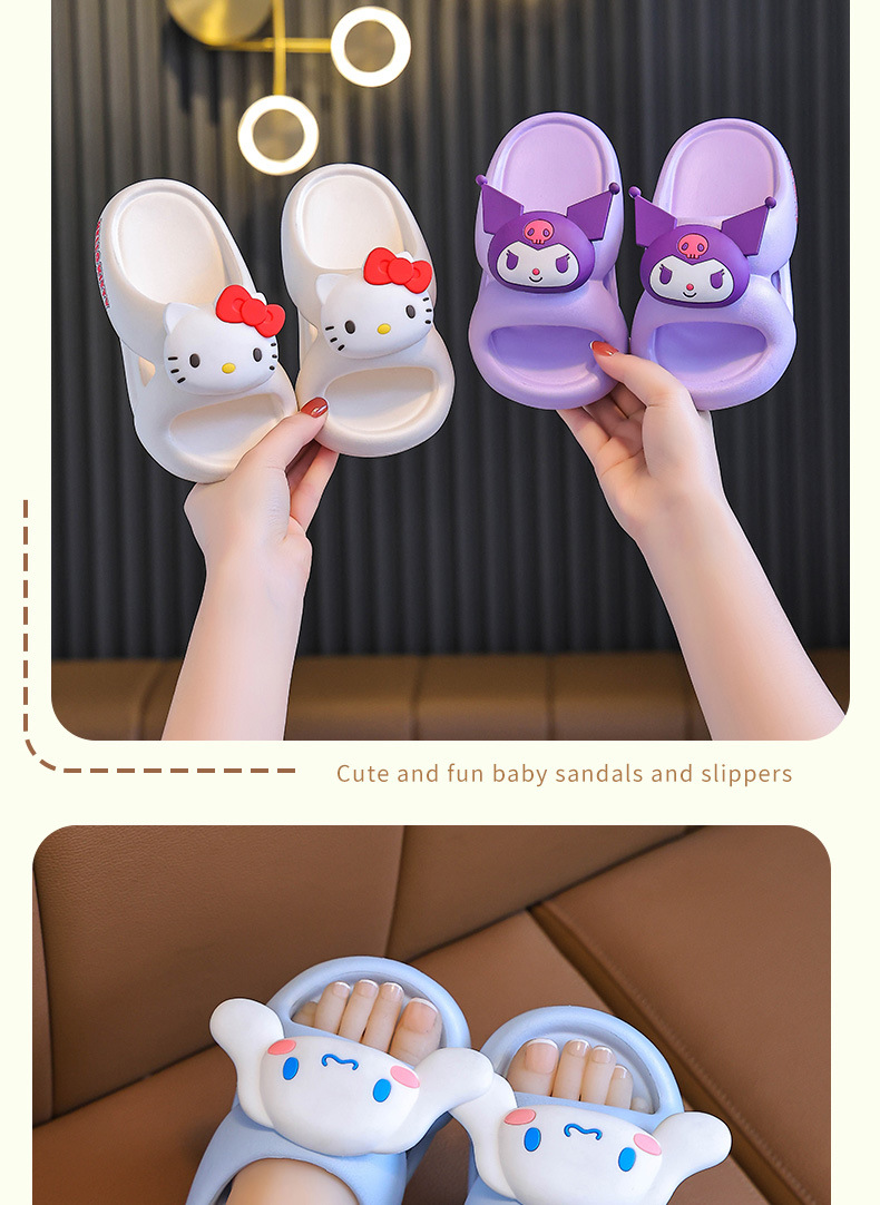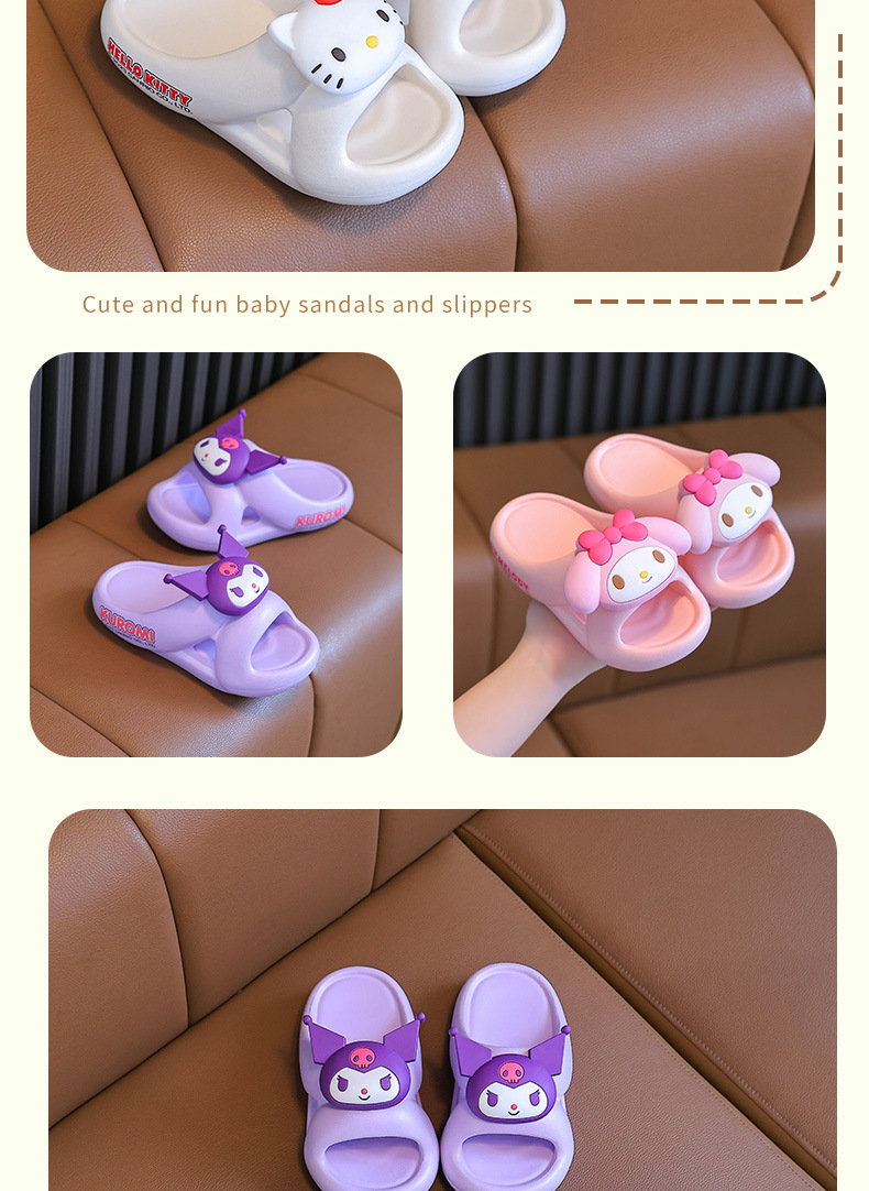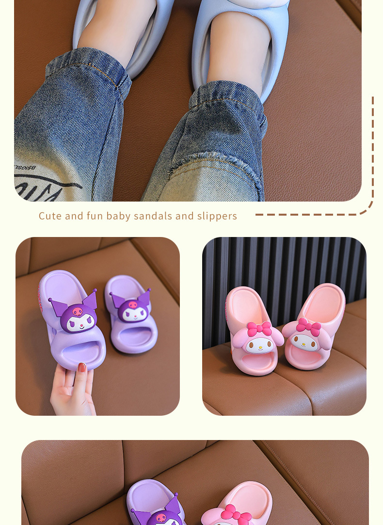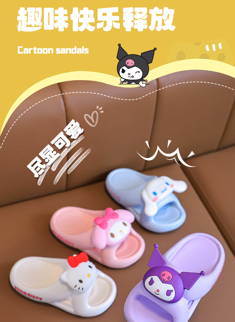 정품 산리오 어린이 슬리퍼 소녀 실내 가정 및 가정용 미끄럼 방지 멜로디 슬리퍼