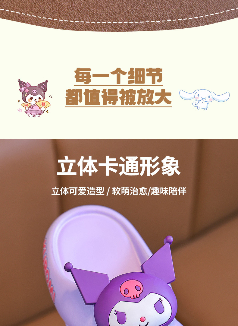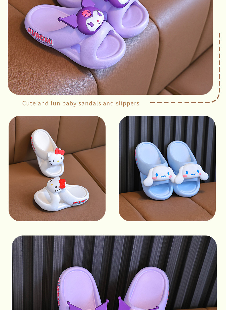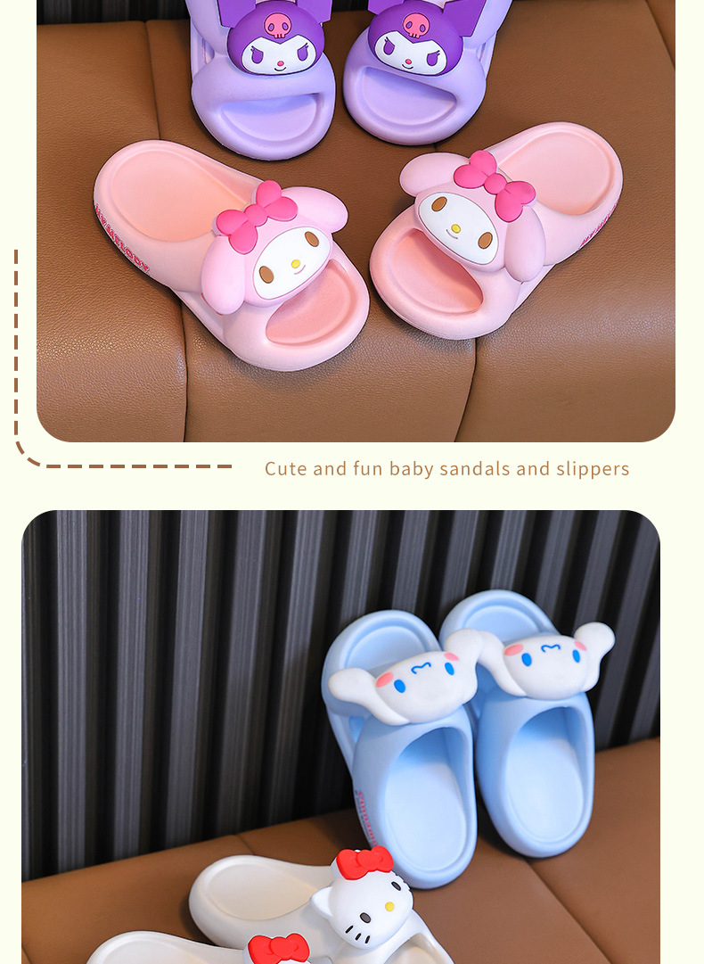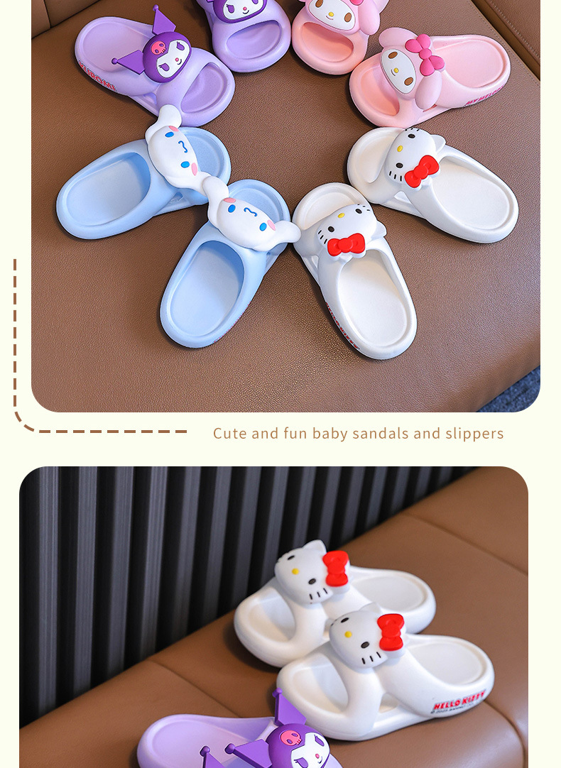 정품 산리오 어린이 슬리퍼 소녀 실내 가정 및 가정용 미끄럼 방지 멜로디 슬리퍼