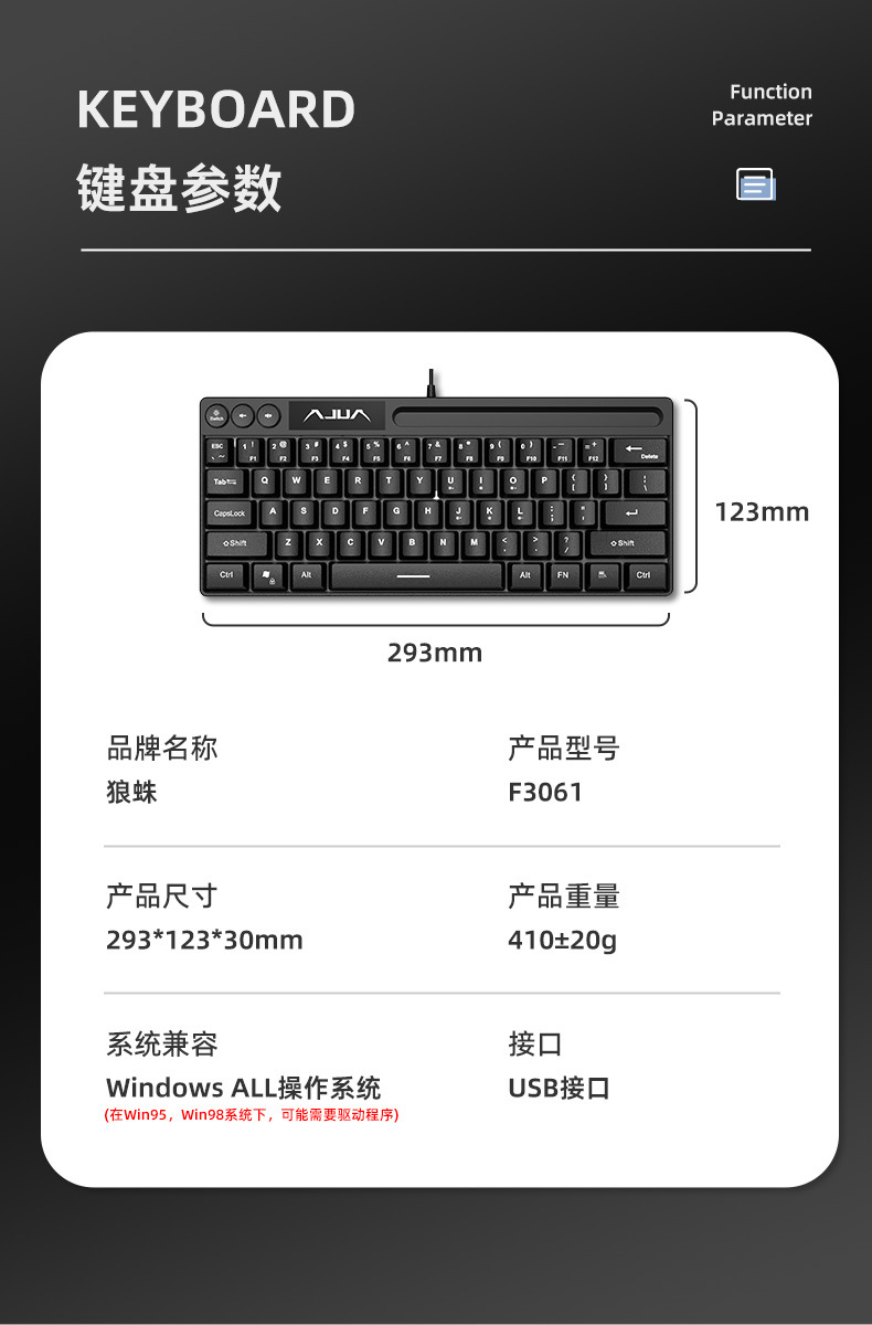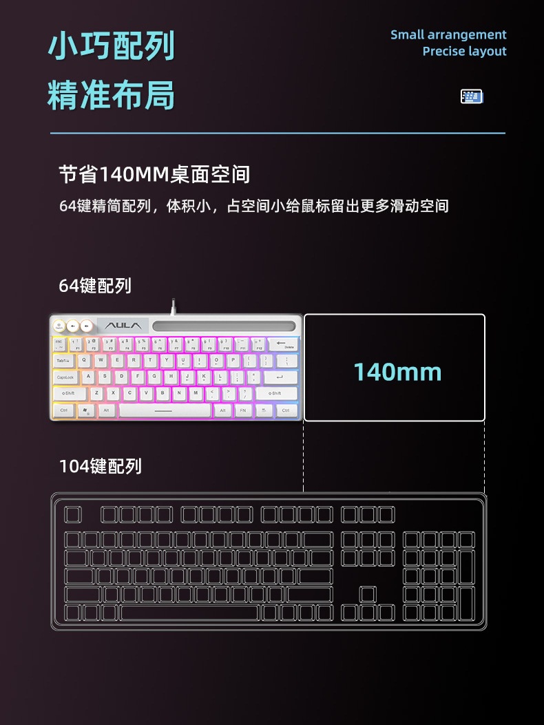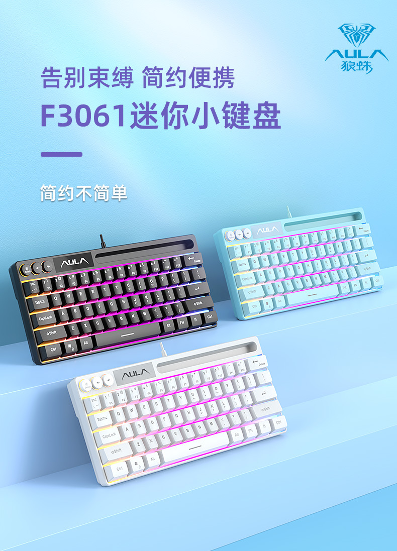 울프스파이더 F3061 기계식 키보드 64키 유선 미니 RGB 데스크탑 노트북 편리한 사용