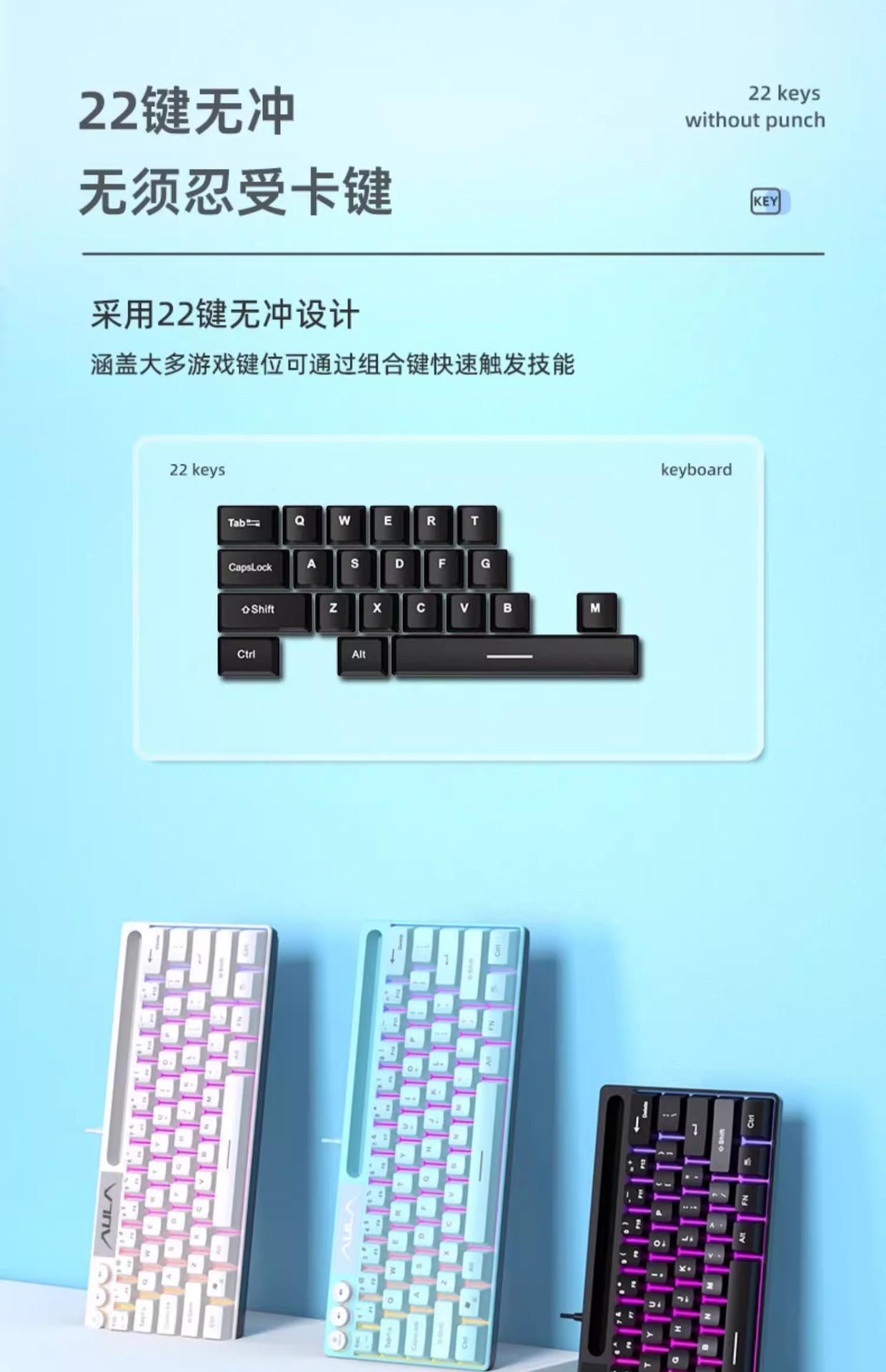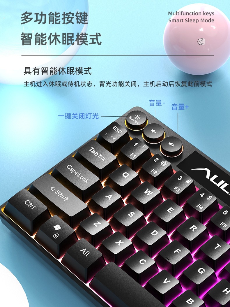 • 블루 RGB 컬러 라이트 유선 키보드