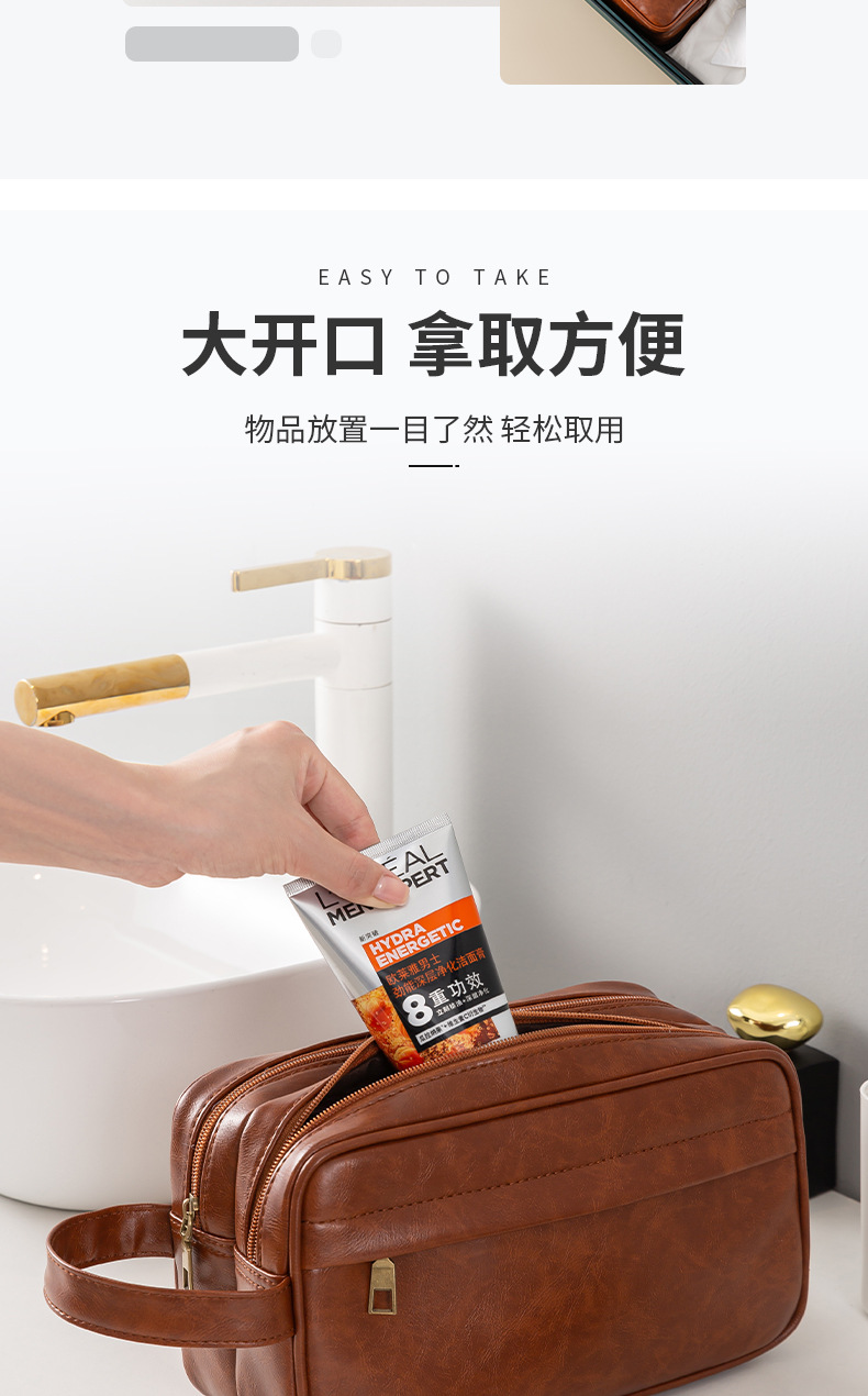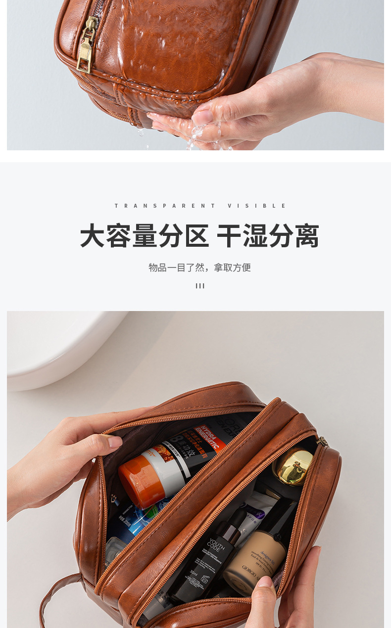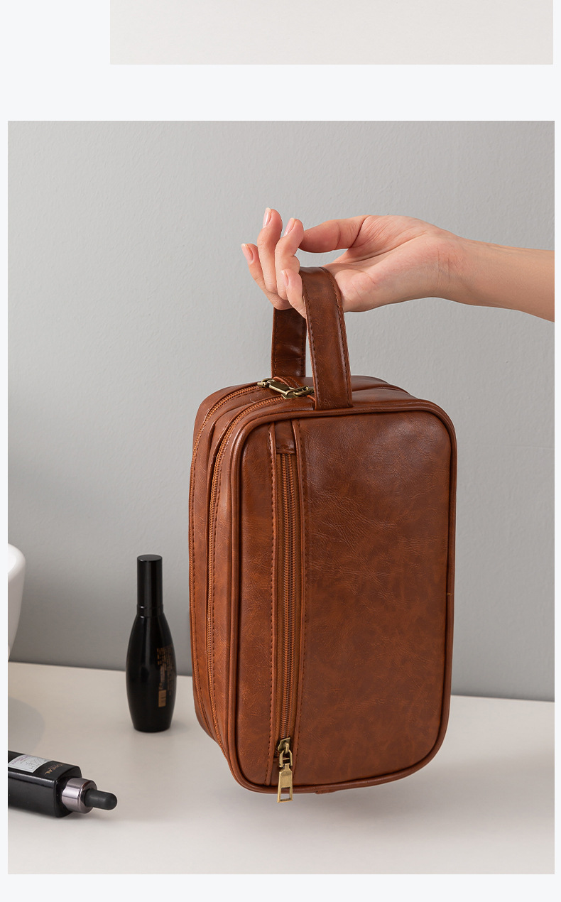 • PU 더블 레이어 세면도구 가방 브라운