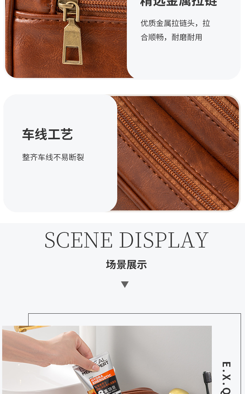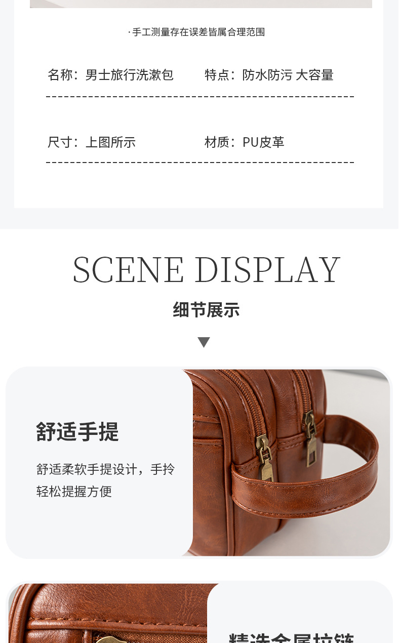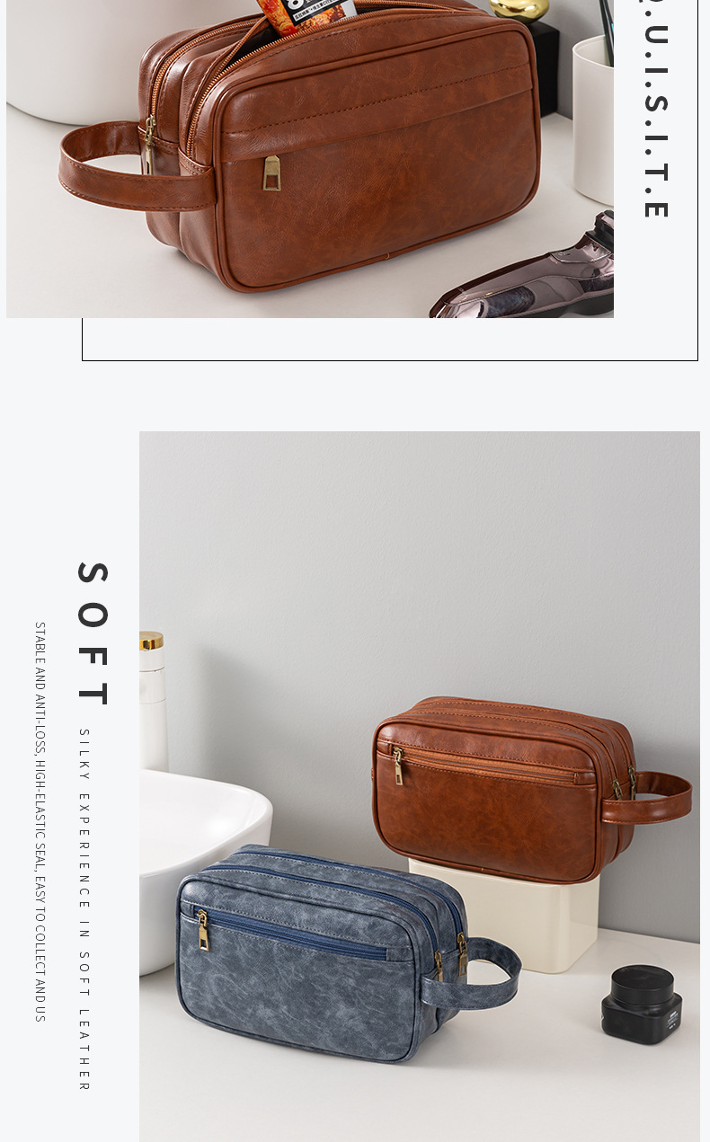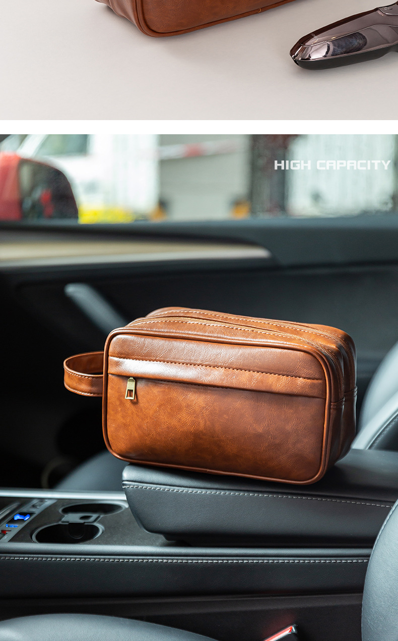 • PU 더블 레이어 세면도구 가방 브라운