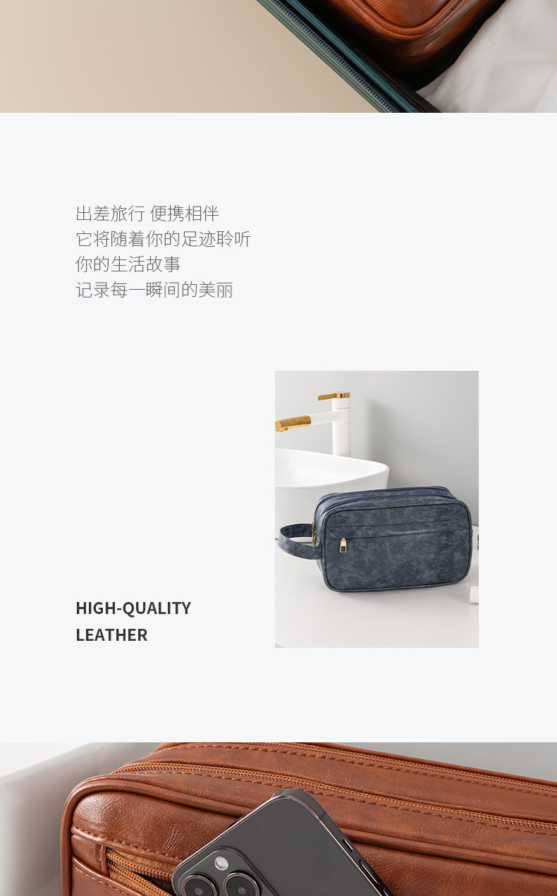• PU 더블 레이어 세면도구 가방 블루
