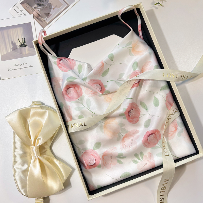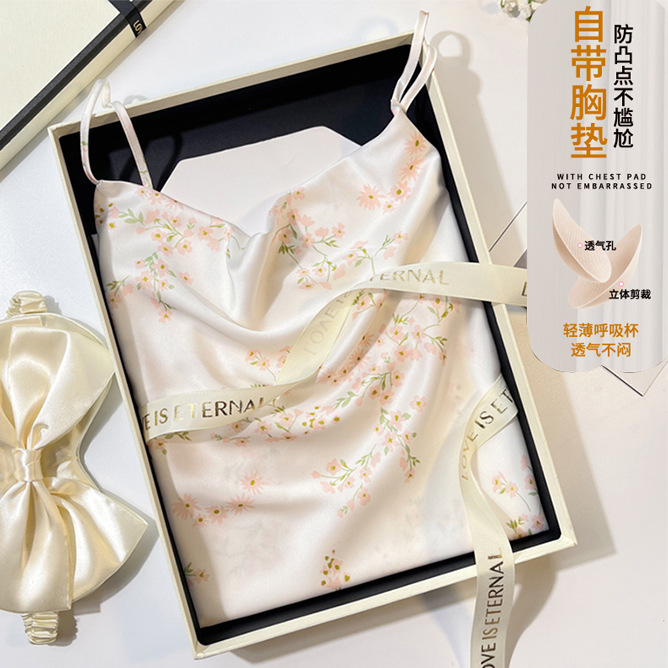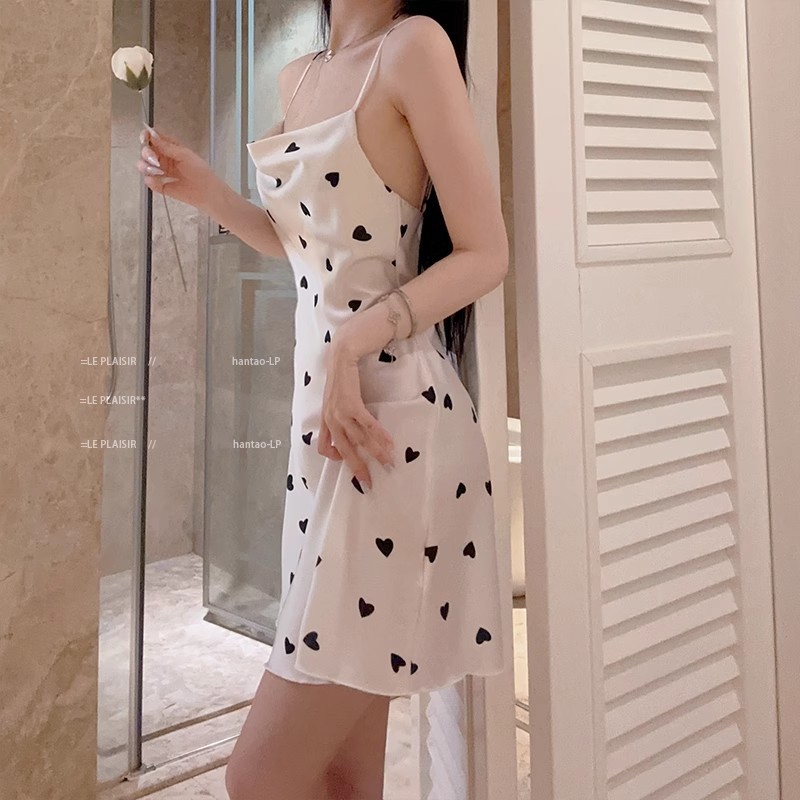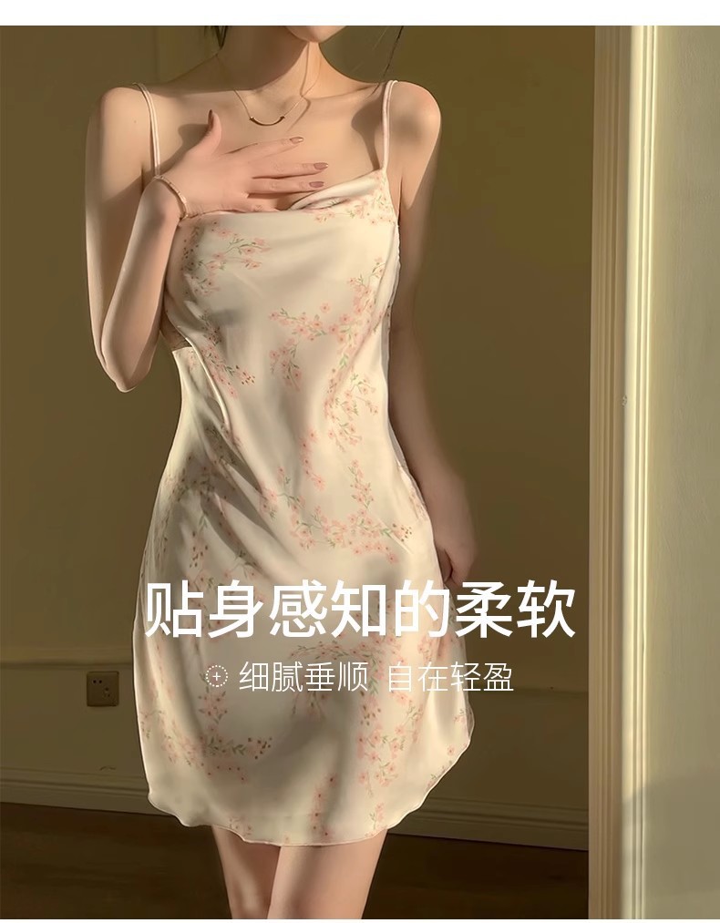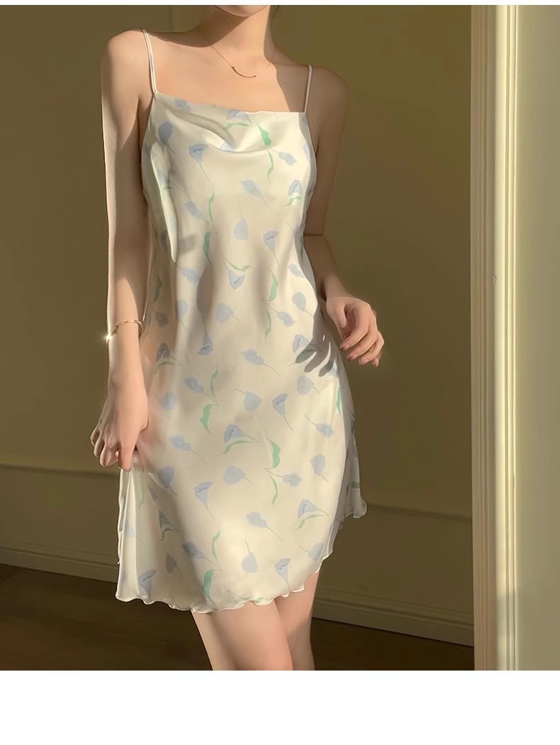 여자 여름 얇은 프렌치 슬링 나이트 드레스 가슴 패드와 달콤한 백리스 작은 가슴 원피스 홈 옷스토어 가기