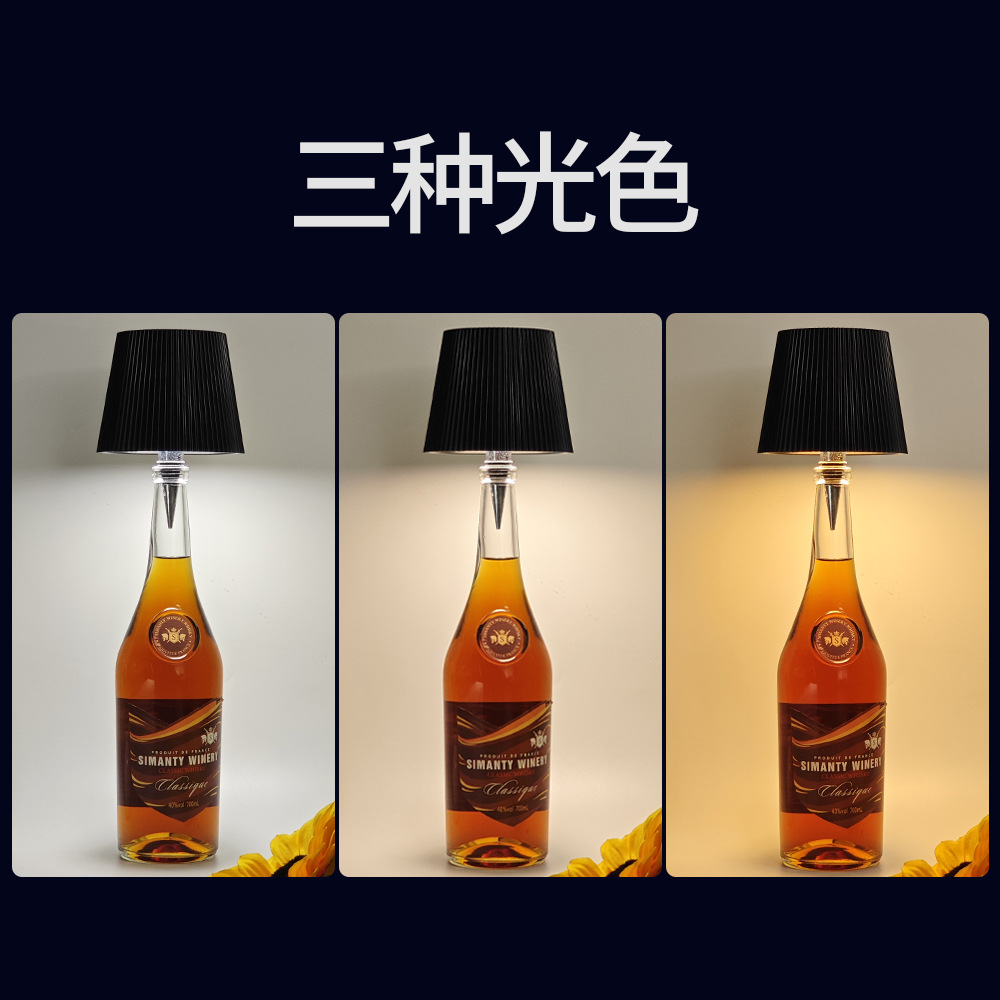 국경 독점 스트라이프 플러그인 와인 병 램프 트라이 컬러 라이트 RGB 충전식 터치 와인 병 책상 램프
