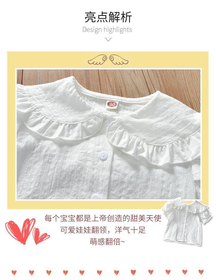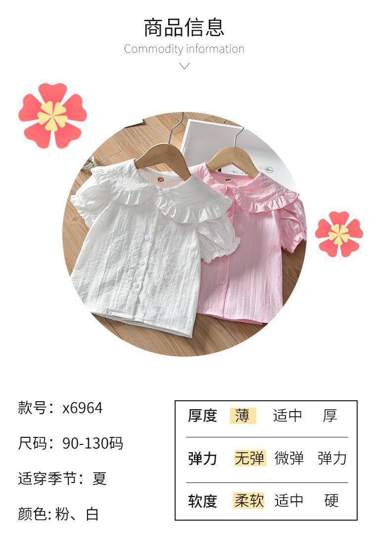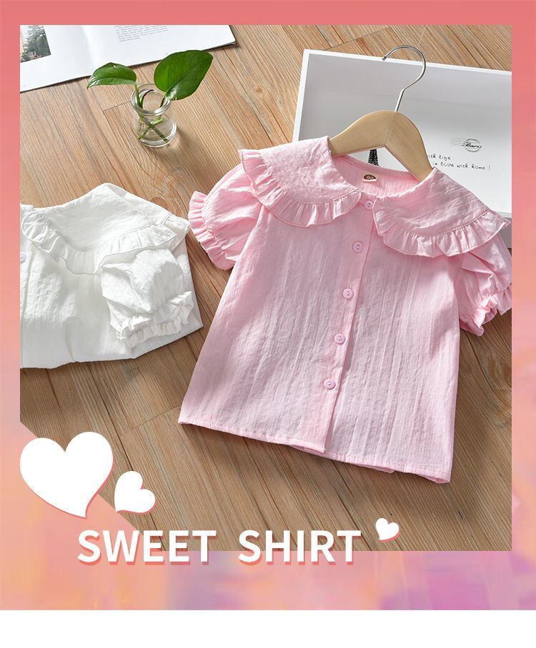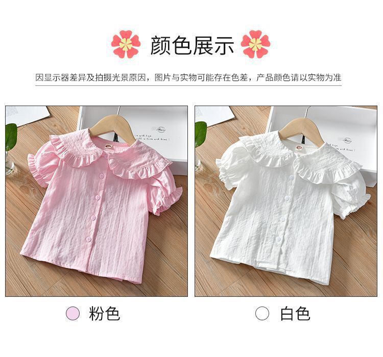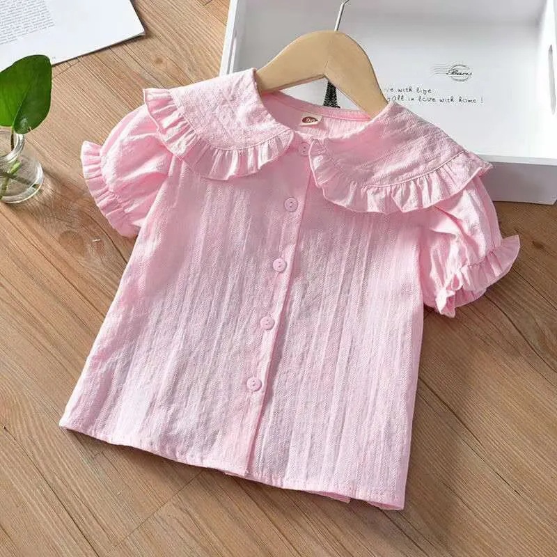 새 소녀의 셔츠 어린 소녀의 한국 스타일 캐주얼 솔리드 컬러 셔츠 어린이 올매치 서양식 인형 칼라 코튼 리넨 탑