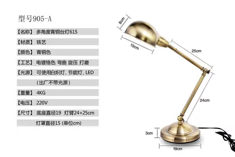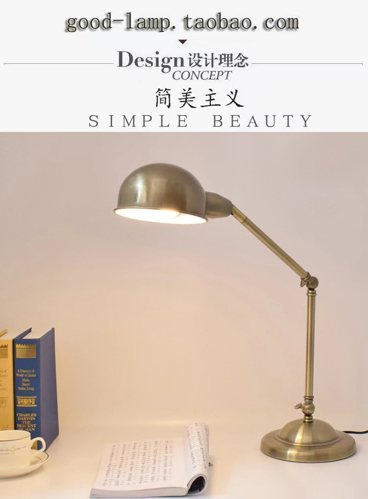 미국 클래식 청동 금속 접이식 호텔 홈 장식 책상 컴퓨터 연구 책상 램프 공장 아울렛스토어 가기