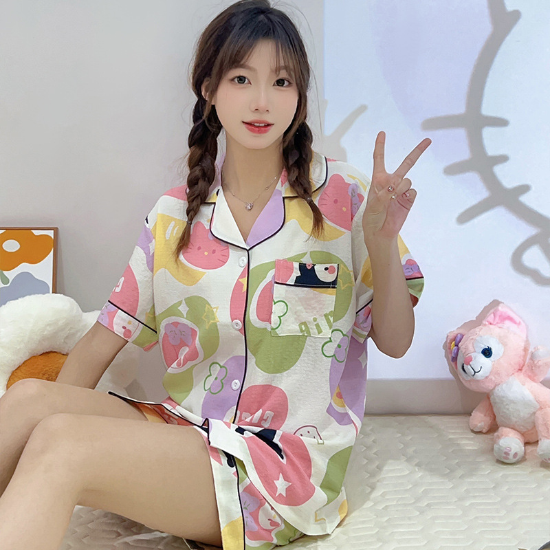 2024 한국식 Ins 목가적 스타일 버블 작은 꽃 여성 잠옷 여름 플러스 사이즈 여학생 홈 옷