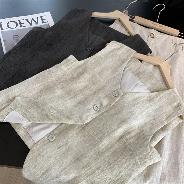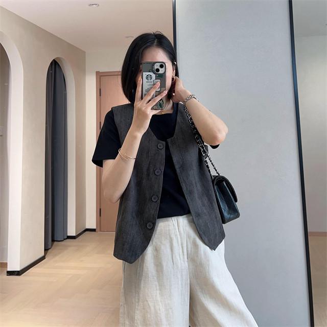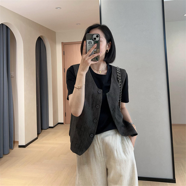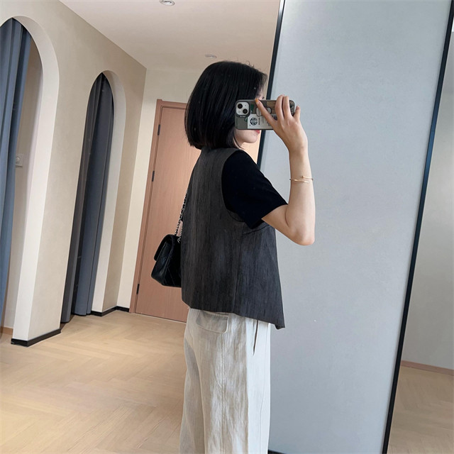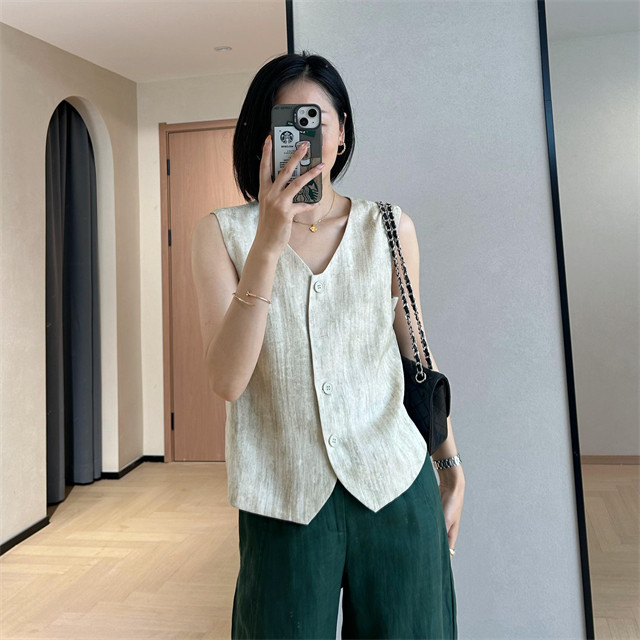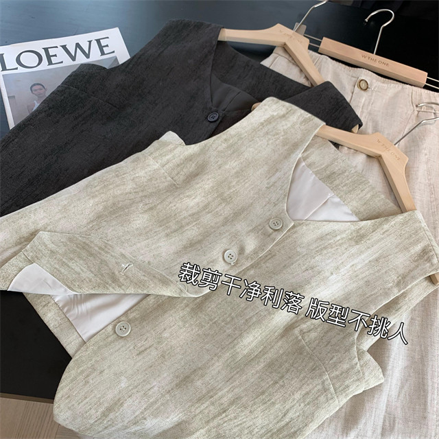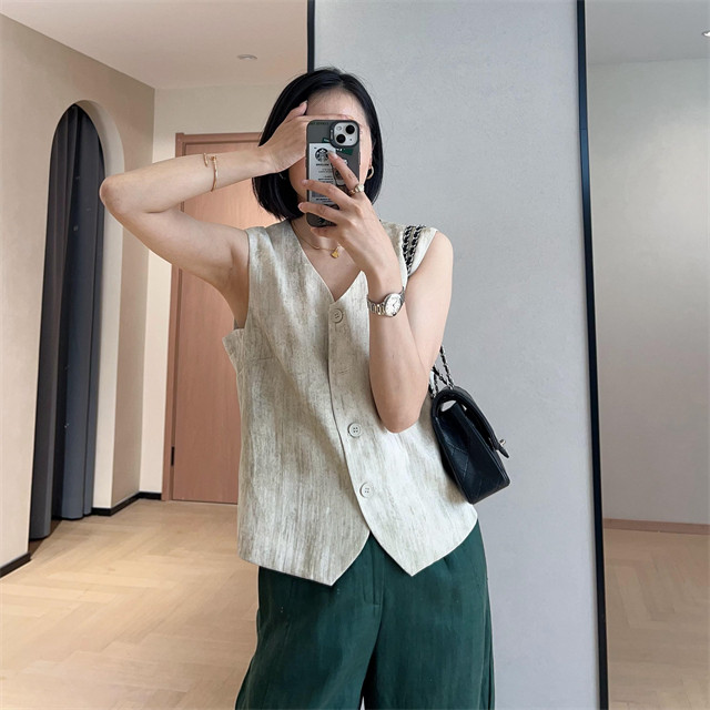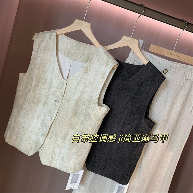 봄은 너무 늦게 하이 엔드 오래된 돈 스타일 조끼 슬리밍 기질 올 매치 짧은 V 넥 린넨 조끼 코트 여성의 봄 새로운스토어 가기