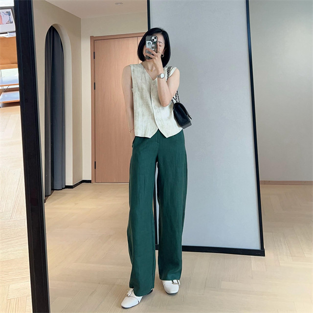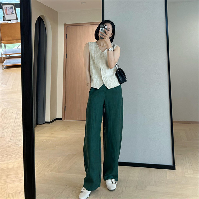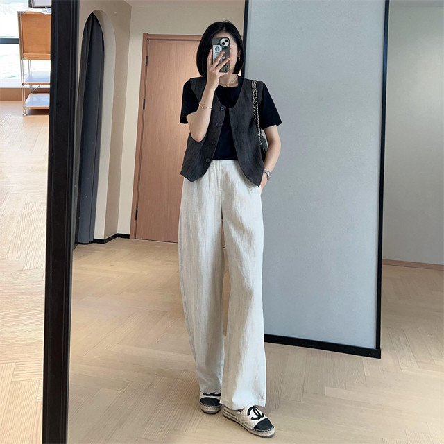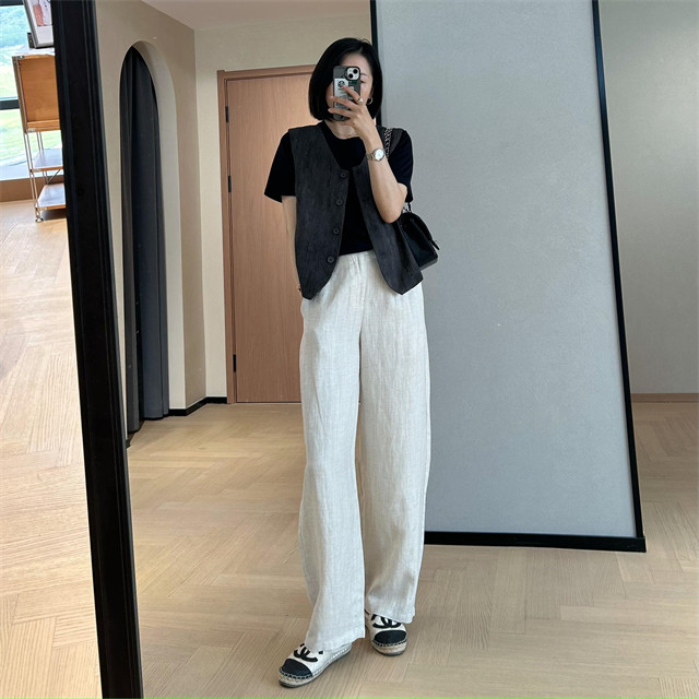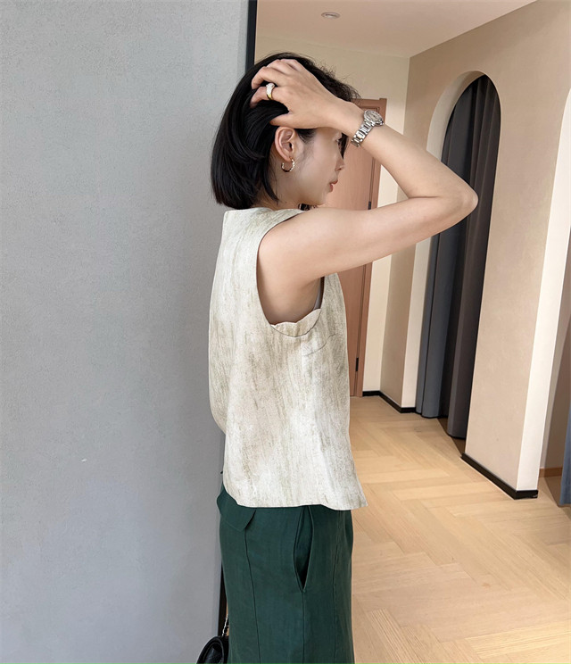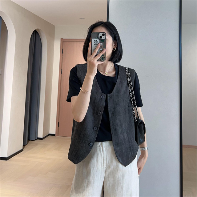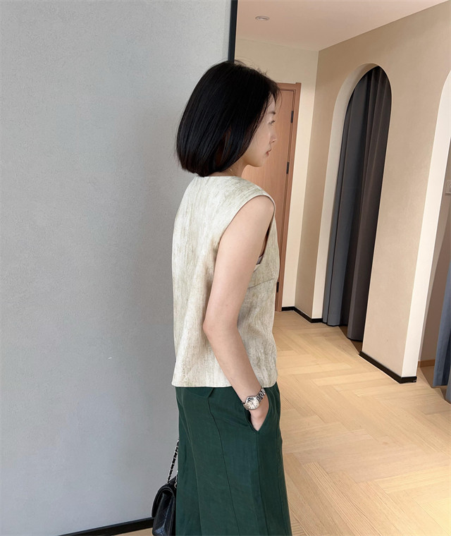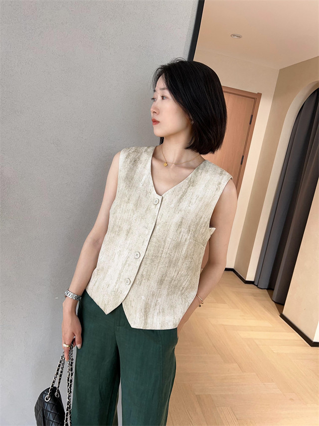 봄은 너무 늦게 하이 엔드 오래된 돈 스타일 조끼 슬리밍 기질 올 매치 짧은 V 넥 린넨 조끼 코트 여성의 봄 새로운스토어 가기