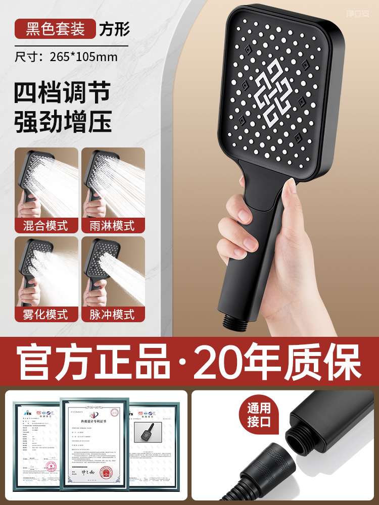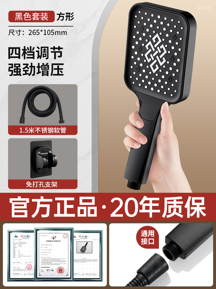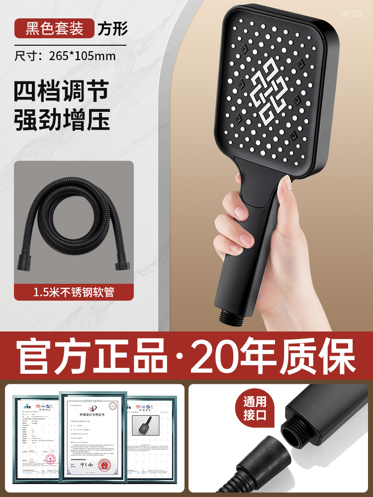 • 【블랙 사각】 4단 수압 조절 대용량 샤워기⚑