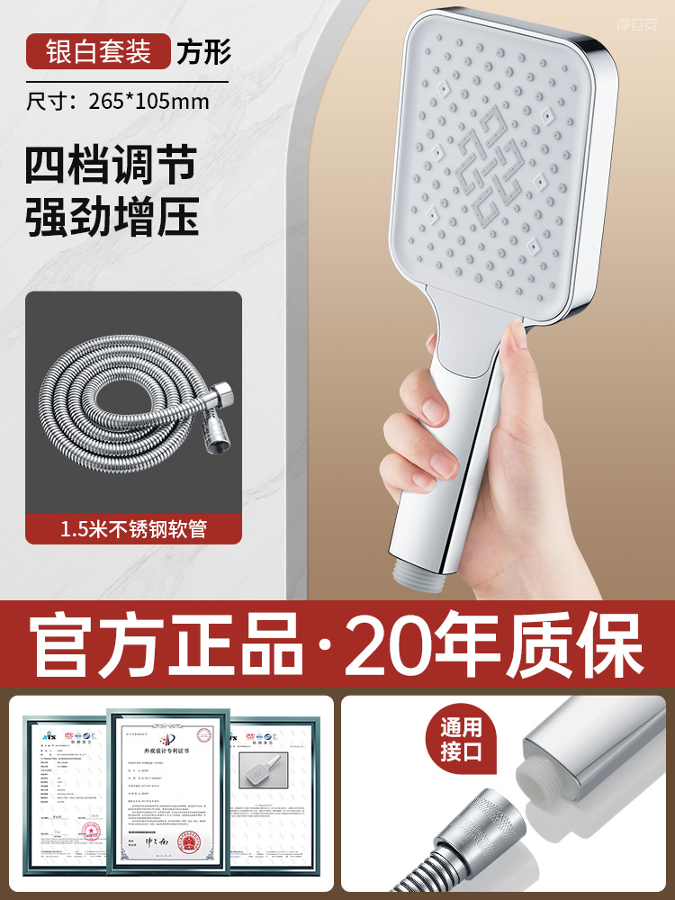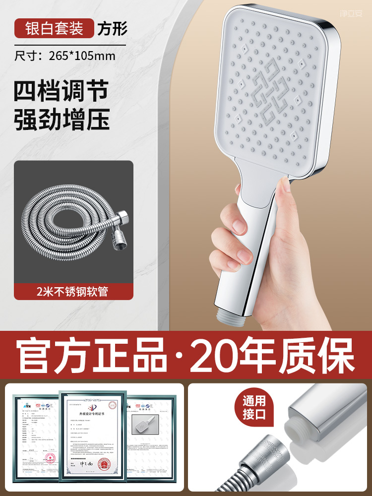 • 【실버 세트 4】 4단 수압 조절 샤워기 + 2m 방폭 호스⚑