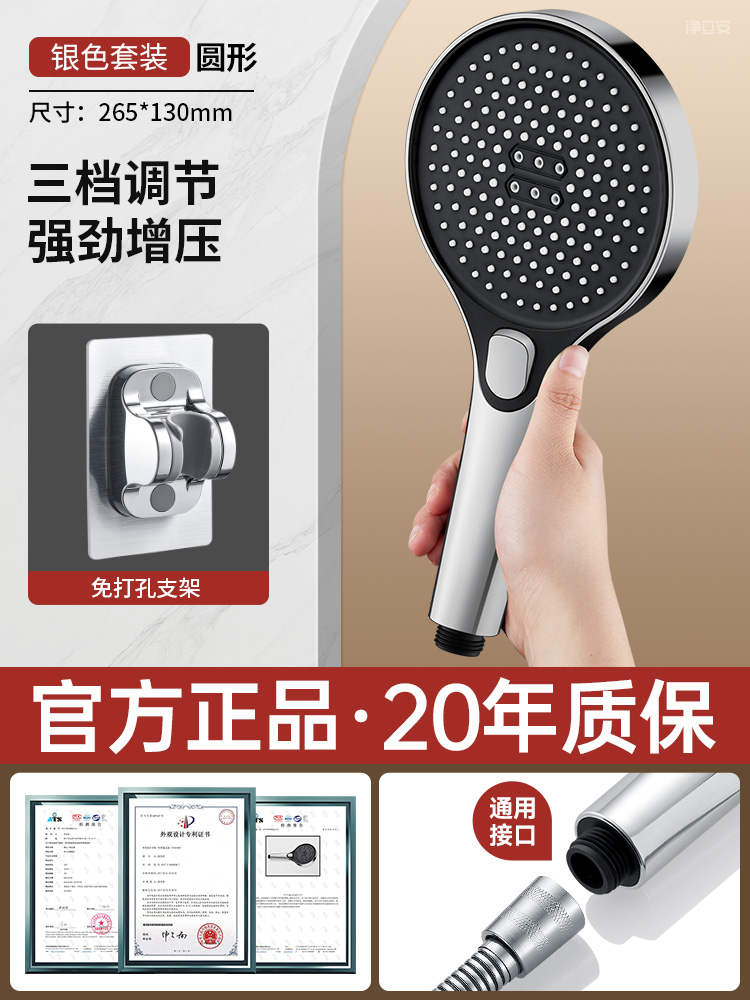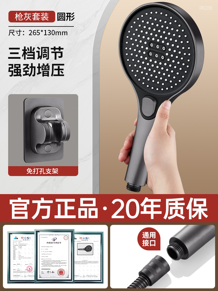• [건그레이 세트3] 과급 대형 물 배출 샤워기 + 펀치 프리 브라켓⚑