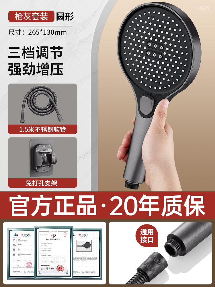 • [건그레이 세트1] 과급 대형 물 배출 샤워기 + 1.5m 샤워 호스⚑